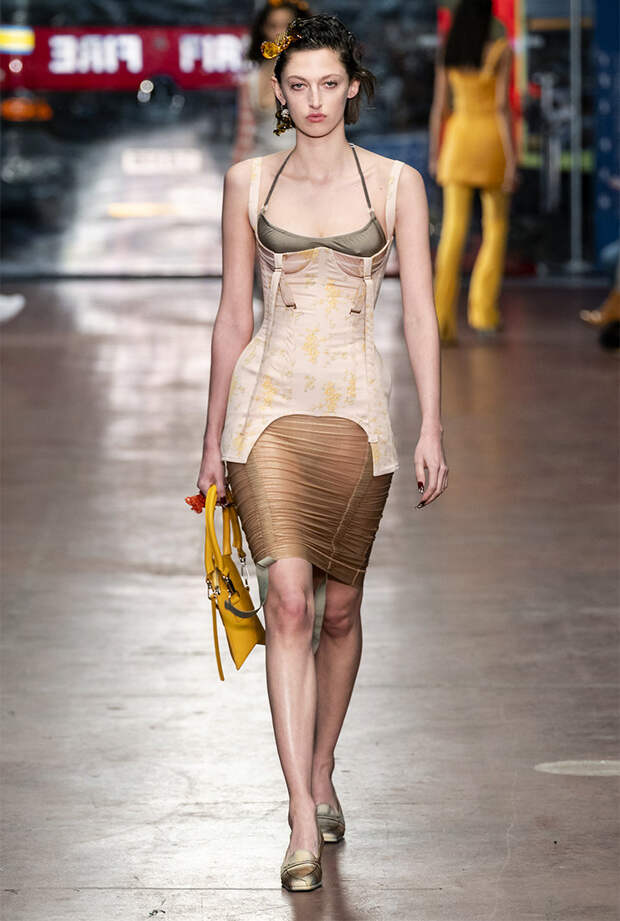 Так, на осенне-зимнем показе Louis Vuitton модели дефилировали в корсетах и весьма скромных юбках, надетых с плотными колготками и грубыми ботинками, а на шоу Alexander McQueen этот же провокационный элемент прекрасно гармонировал со строгими брюками и массивными цепями, закрывающими чересчур открытую зону декольте.