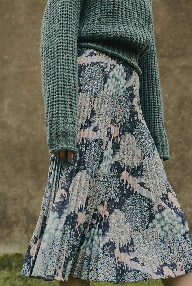 Британский интерьерный бренд основал Уильям Моррис, один из самых влиятельных дизайнеров направления Arts & Crafts — то есть искусства и ремесел, — участники которого вручную разрабатывали и изготавливали предметы декоративно-прикладного искусства. А значит, в отличие от бездушных машин и станков, подходили к делу с душой и творчеством.Несколько архивных паттернов легендарной компании вошли и в коллекцию H&M. Например, на романтичные платья, летящие юбки и шейные платки помещены рисунки в виде цветов, деревьев и сказочных существ. Есть также небольшой мешочек на цепочке с изображением листьев и бутонов, который подойдет к повседневному трикотажному комплекту и вечернему наряду из бархата. Принтованную рубашку шведский бренд надел на теплый свитер — это новое сочетание сейчас актуально и в стритстайле.