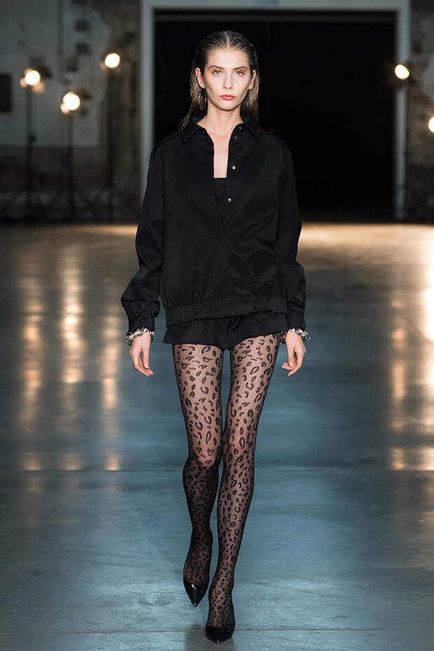 Для весенне-летней коллекции Игорь Чапурин искал вдохновение в противоречивом, но ярком времени конца 80-х и начала 90-х годов. На эпоху пришелся и расцвет уличного искусства, и всенародная любовь к телеаэробике, и популяризация моды, и ажиотаж вокруг технических инноваций. Все это — части сложного эстетического пазла, который Чапурин отражает в традиционной для себя деконструкции форм.