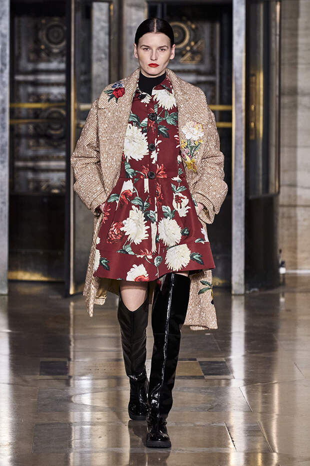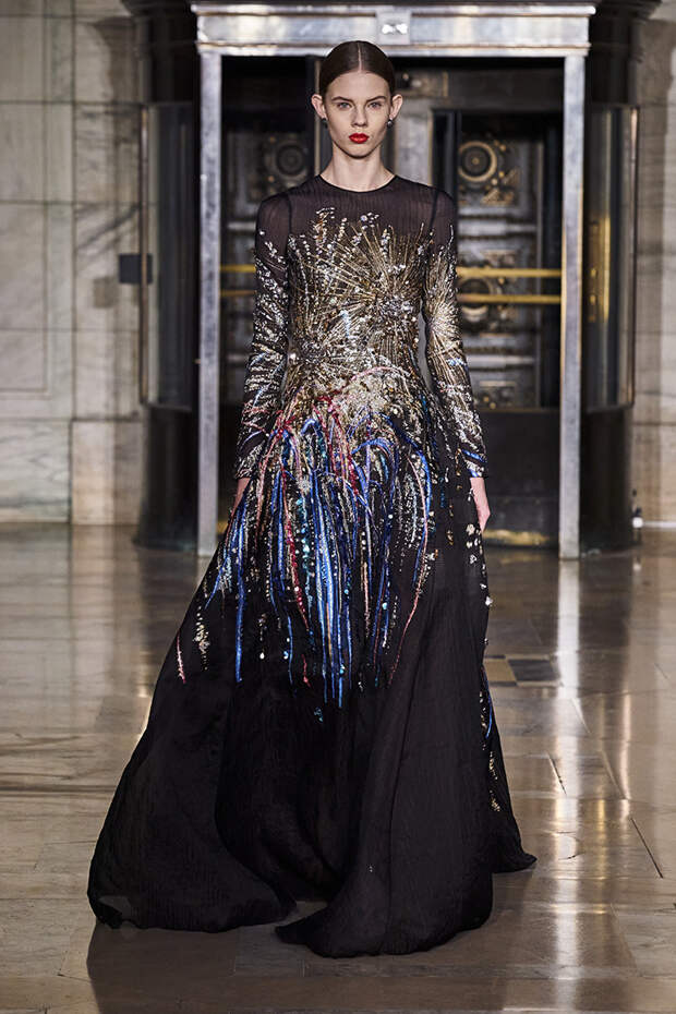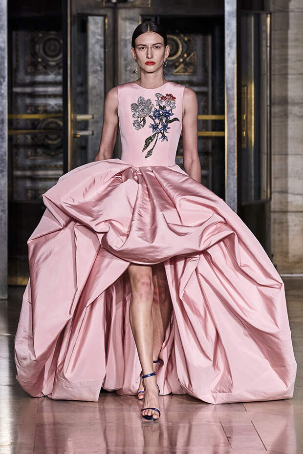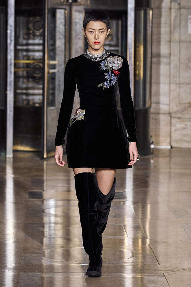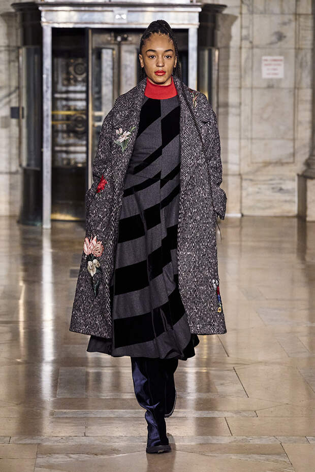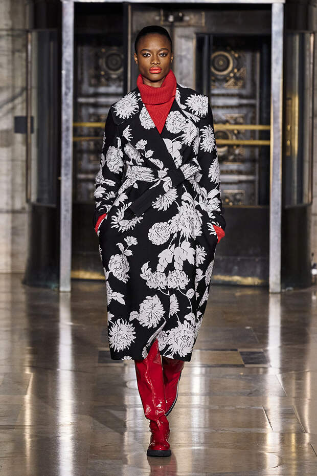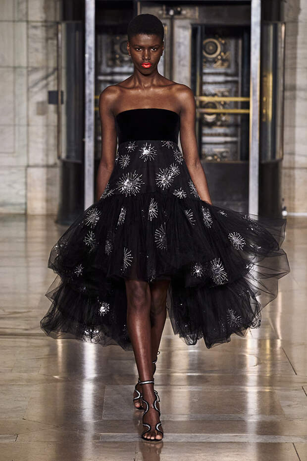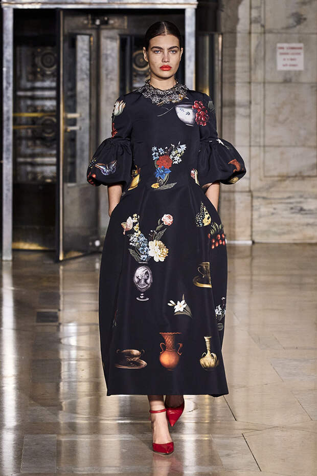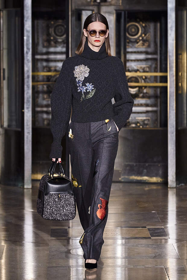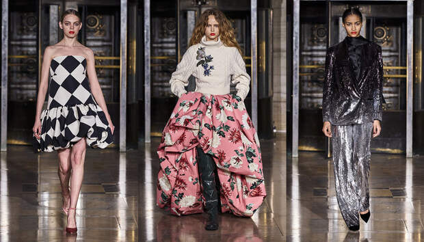 Вдохновившись снимком самого Оскара де ла Ренты, сделанной на знаменитом черно-белом балу Трумана Капоте, решили посвятить свою осенне-зимнюю коллекцию вечеринкам. Вот только получилась она совсем не черно-белой, а наоборот — красочной и яркой. Открылся показ серией выходов, которые и вовсе можно считать мастер-классом по сочетанию самых неожиданных, контрастных тонов.