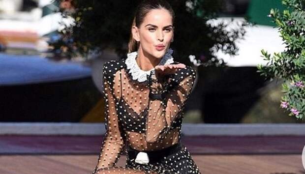 Так, в сети появились свежие снимки топ-модели Изабель Гулар: первым нарядом, который она продемонстрировала в Венеции, стало прозрачное платье в пол из черного тюля с золотыми нашивками-горошинами по всей длине от бренда Philosophy. Сквозь наряд просвечивало нижнее белье: черные трусы с высокой талией и кружевное бра с треугольными чашками.