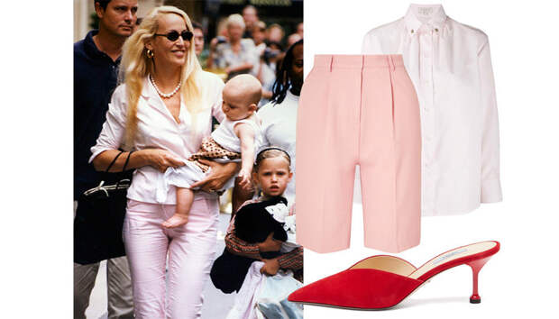21 год назад модель Джерри Холл одевалась так, как мы хотим одеваться сегодня. Этот кадр был сделан на выходе из парижской гостиницы Plaza Athénée летом 1998 года: в жаркий июльский день гражданская жена Мика Джаггера спешила по делам вместе с детьми, надев удобные пудрово-розовые брюки капри, хлопковую рубашку и алые мюли.