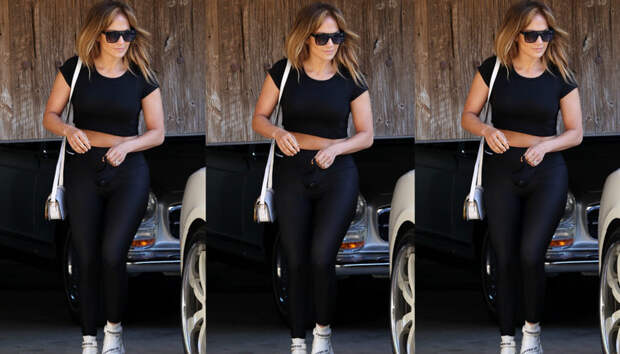Джей Ло и Алекс отправились лично посмотреть этот дом - и выбрали для этой цели парные образы. Несмотря на калифорнийскую жару, пара остановилась на черных тотал-луках. Певица надела кроп-топ с короткими рукавами и легинсы: такой наряд подчеркнул ее точеную фигуру и упругий пресс, над которым Дженнифер трудится каждый день, не давая себе никаких поблажек.