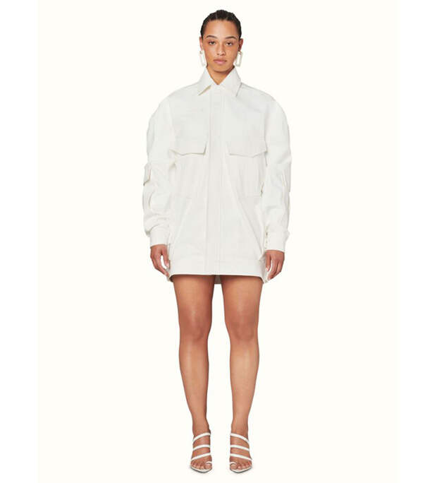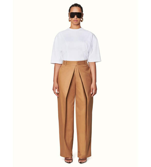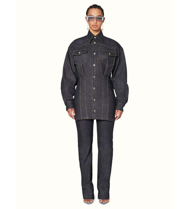 В отличии от бельевого бренда Savage X Fenty, в лукбуках которого предстает сама РиРи, в этот раз она ограничилась услугами моделей. Все вещи легко представить на самой певице: "мужские" костюмы с поясными сумками, платья-рубашки, мини из денима, широкие брюки сложного кроя, босоножки на тонких ремешках.