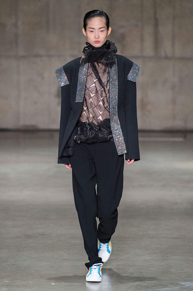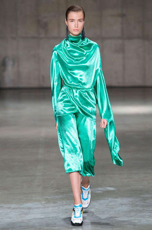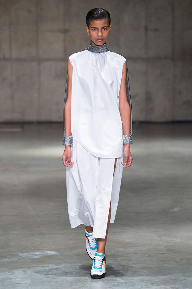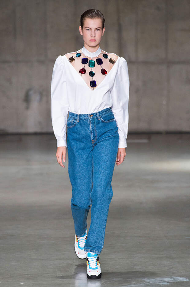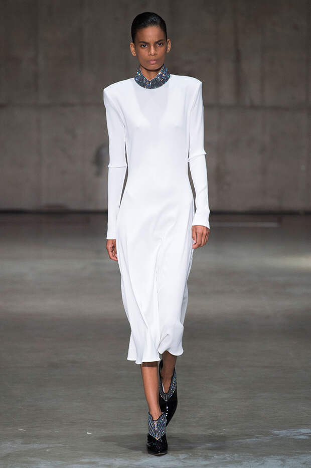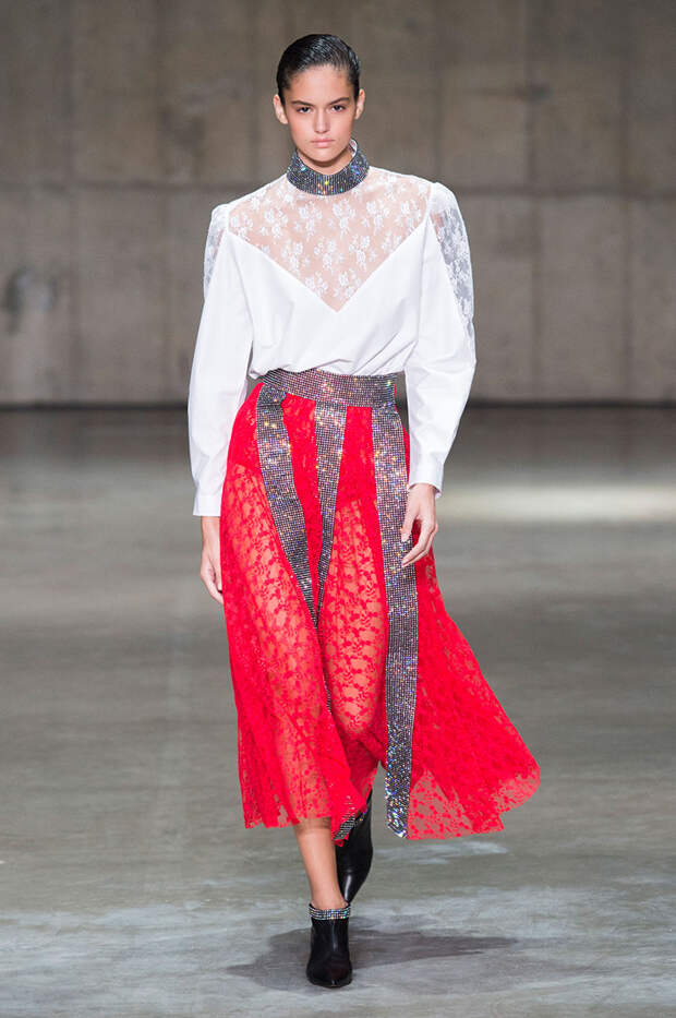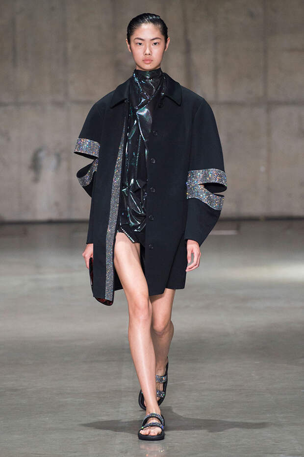 Блок нарядов для вечернего выхода проникнут эстетикой драгоценностей. Кейн использует как реальные камни, так и принты в виде них. Также многие вещи отделаны россыпью страз Swarovski. Для самых смелых в коллекции есть “голые” платья, сшитые из множества прозрачных лоскутов; платья с глубокими декольте и манящими разрезами от бедра. А для тех, кто любит вещи построже, представлены платья прямого кроя и монохромные комплекты из юбок и блуз.