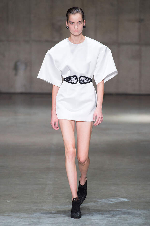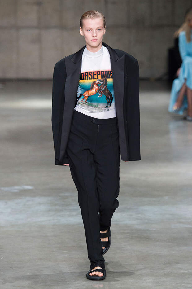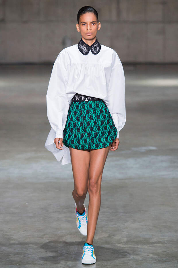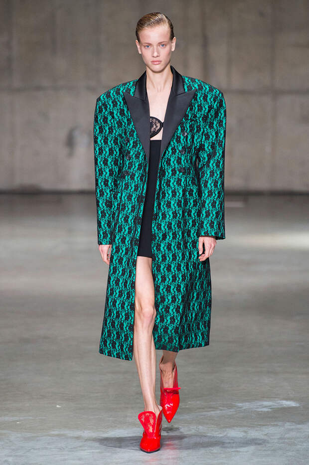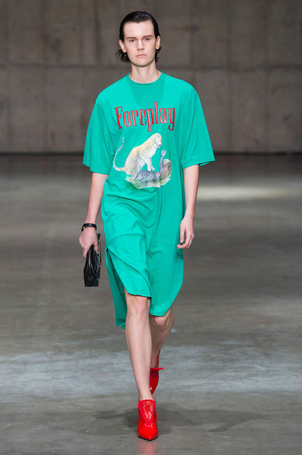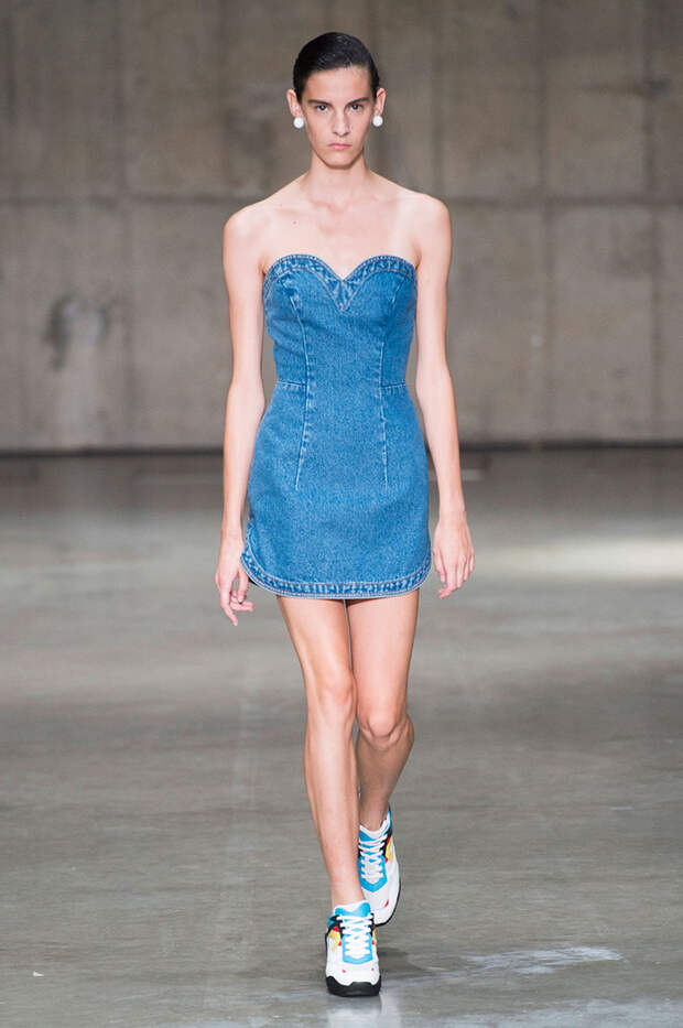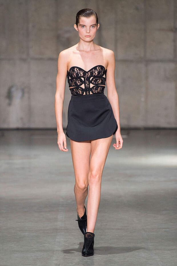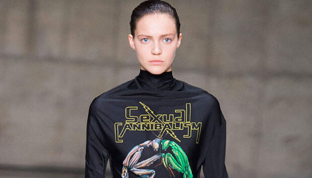 В новой коллекции любимец Британского модного совета и Донателлы Версаче Кристофер Кейн играет с формами и силуэтами, но при этом не ударяется в крайности: все вещи, которые он предлагает носить в весенне-летнем сезоне, получились носибельными и, как всегда, очень женственными. На этот раз подчеркивать сексуальность дизайнер предлагает короткими платьями-бюстье из денима и кружева, юбками плиссе и нежными комбинациями, а если хочется добавить немного дерзости, то здесь подойдут лаковые плащи, “мужские” брючные костюмы и просторные футболки, будто позаимствованные у старшего брата, надписи на которых говорят сами за себя: если в прошлый раз Кейну послужили принтами картинки из книги Алекса Комфорта "Радость секса", то теперь мы видим фразу “Сексуальный каннибализм”.