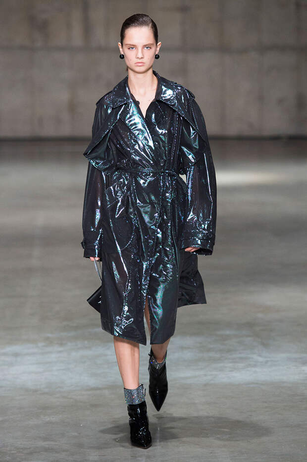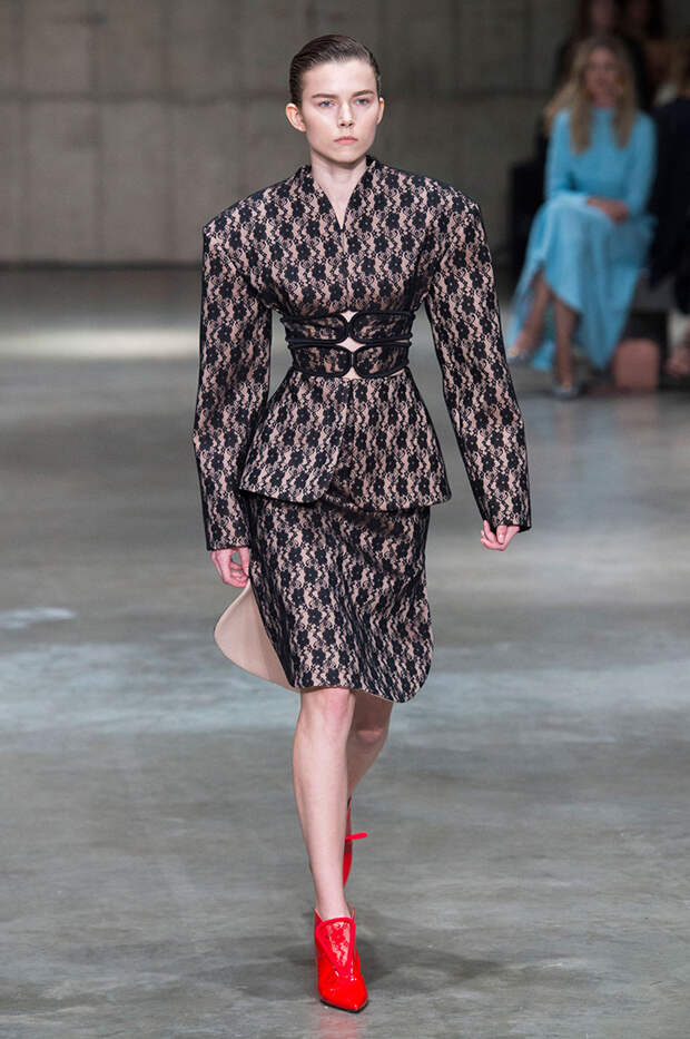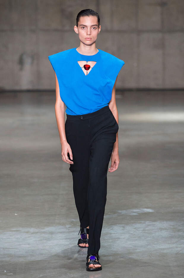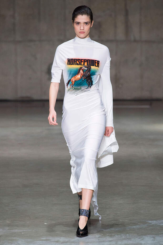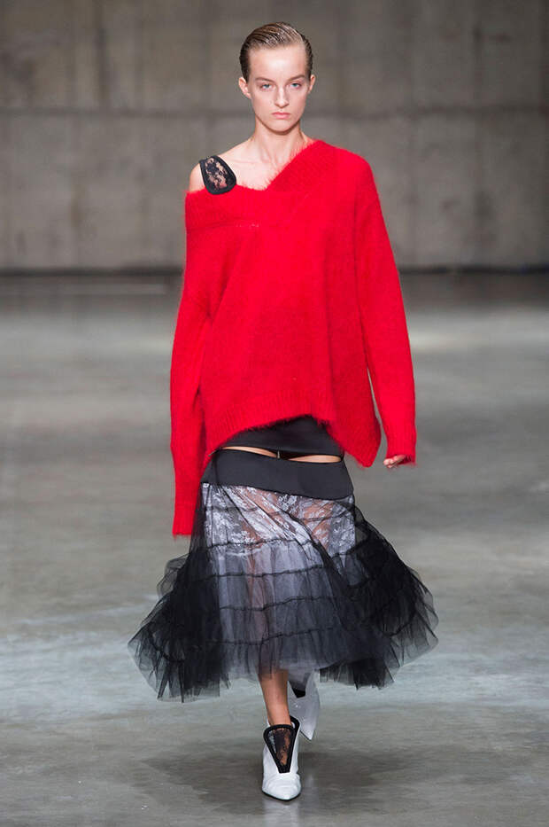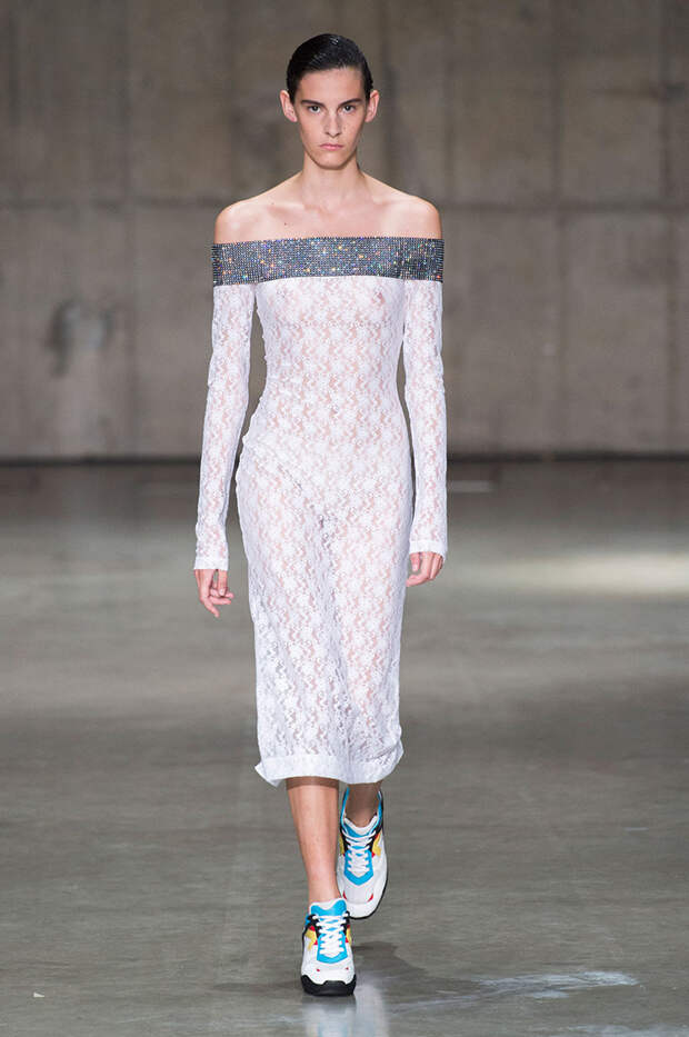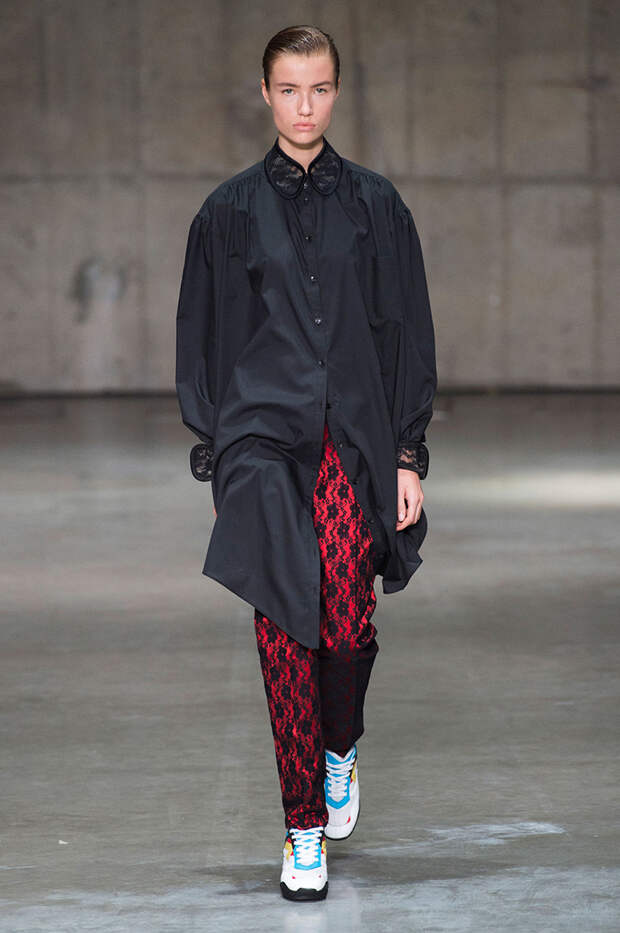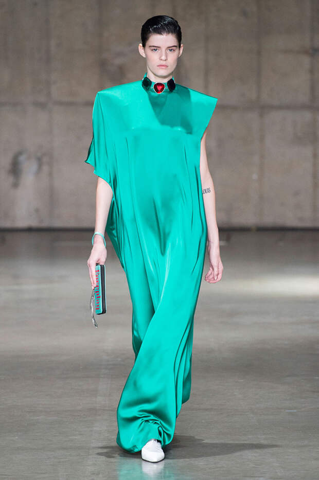 В новой коллекции любимец Британского модного совета и Донателлы Версаче Кристофер Кейн играет с формами и силуэтами, но при этом не ударяется в крайности: все вещи, которые он предлагает носить в весенне-летнем сезоне, получились носибельными и, как всегда, очень женственными. На этот раз подчеркивать сексуальность дизайнер предлагает короткими платьями-бюстье из денима и кружева, юбками плиссе и нежными комбинациями, а если хочется добавить немного дерзости, то здесь подойдут лаковые плащи, “мужские” брючные костюмы и просторные футболки, будто позаимствованные у старшего брата, надписи на которых говорят сами за себя: если в прошлый раз Кейну послужили принтами картинки из книги Алекса Комфорта "Радость секса", то теперь мы видим фразу “Сексуальный каннибализм”.