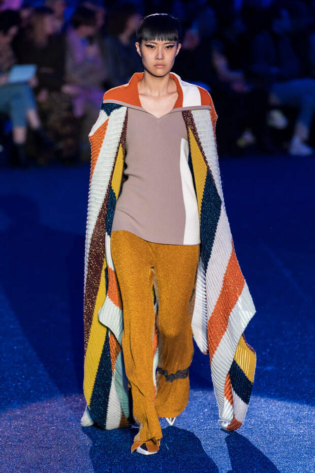 Больше 60 лет команда Дома Missoni вяжет удивительные вещи: от тончайших ажурных платьев с узнаваемым "птичьим" узором до нарядных вязаных пальто. В новой коллекции — они же. И сложно представить более уютный гардероб для осени и зимы. Яркие полосатые пончо похожи на пледы, кардиганы — на уютные теплые одеяла, которые всегда с тобой, даже если прятаться от холодов в кровати не выходит.