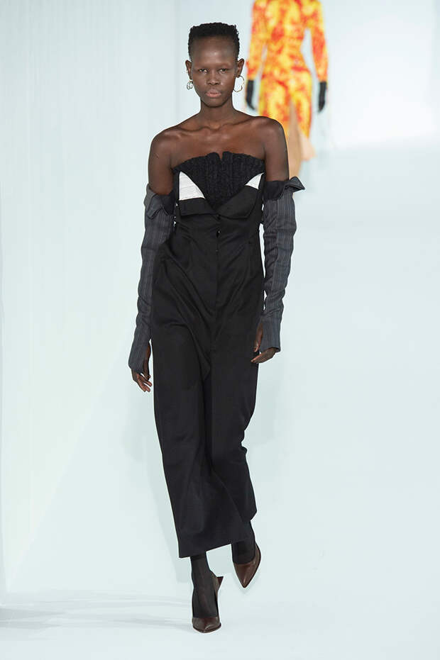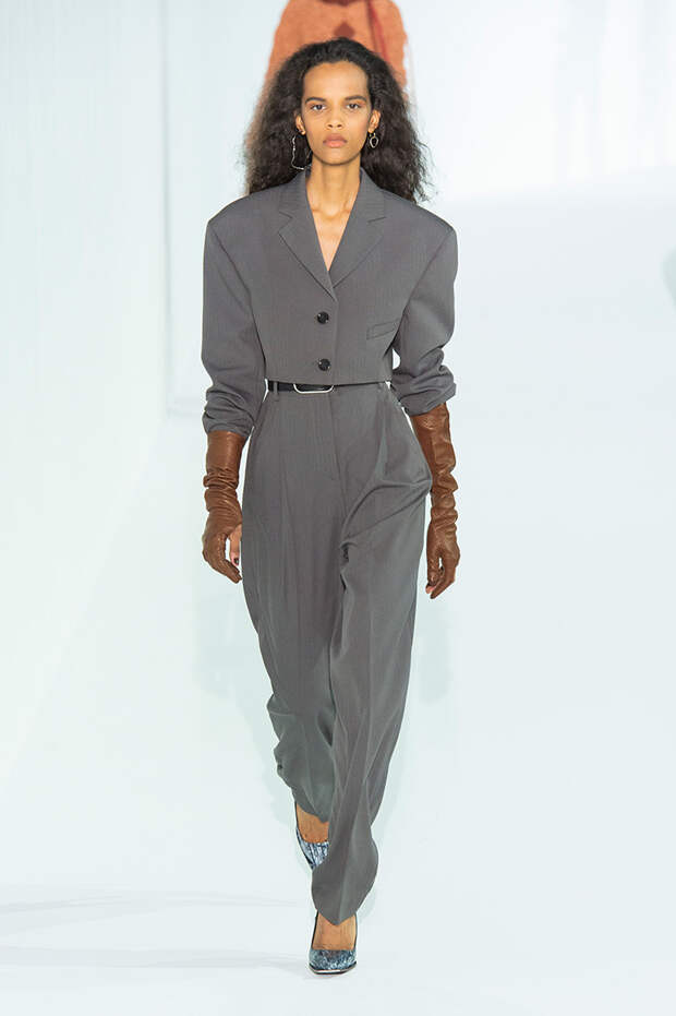 Любимый бренд миллениалов и многих звезд Acne Studios в новой коллекции вновь представил идеальную базу, отвечающую всем запросам современных модниц. Удобно - да, практично - однозначно, с учетом главных трендов года - безусловно! Здесь и платья в стиле “голый нюд”, и кожаные брюки с высокой талией, и жакеты с гипертрофированно широкими плечами (словно адаптированная к реальной жизни версия огромных пиджаков Канье Уэста и рэпера Lil Pump из нашумевшего клипа I Love It).