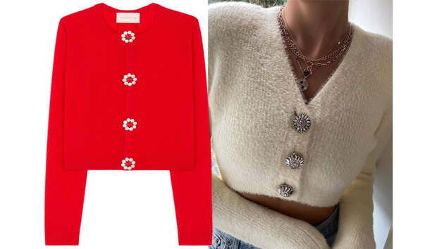 Эта на первый взгляд незначительная деталь может сильно «удешевить» образ или, наоборот, значительно повысить градус стиля. Более того, пуговицы запросто могут стать яркой деталью аутфита, заменив собой уже наскучившие аксессуары. Если вы до сих пор не определились с праздничным нарядом, советуем присмотреться к уютным кардиганам «с изюминкой». Уверяем: блистать новогодней ночью будет не только елка.Этой зимой нарядных пуговиц хватит на всех – по крайней мере дизайнеры предложили множество вариаций. Любителям минимализма точно стоит присмотреться к лаконичным моделям от Tory Burch и Erdem. Смело надевайте их с кожаными брюками или набрасывайте поверх платья в пайетках – тот случай, когда переборщить просто невозможно. В тему минимализма – потрясающие черные кардиганы от Balmain и Versace. Кто сказал, что черный кардиган с массивными булавками вместо пуговиц не может быть нарядным? Правильно, может! А комбинировать такую модель лучше всего с плиссированной юбкой миди и шелковой блузой – строго и стильно одновременно. Не забыли и о романтичных натурах. Для женственных образов мы приберегли нежные кардиганы с воротничками от Miu Miu и Self-Portrait – все из нашей подборки.