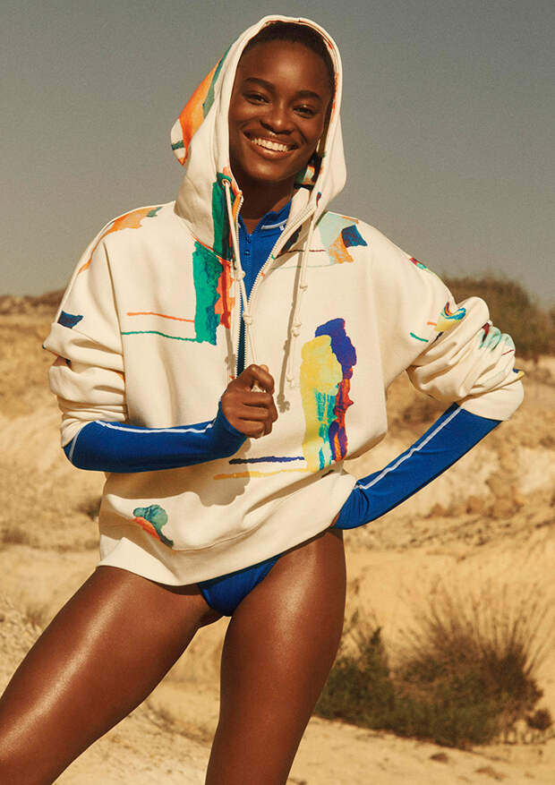 В цветовой палитре доминируют ярко-розовый и кобальтово-голубой с примесями кислотного зеленого на фоне кремовых и песочных оттенков. Коллекция будет выпущена в двух частях — летний ассортимент из спортивных купальников и легких пляжных кафтанов поступит в продажу на hm.com в мае.«Мне особенно нравятся строгие фасоны, которые воплощают в себе присущий коллекции баланс между простотой и изысканностью, — я бы надела атласные брюки и рубашку с ботинками на платформе», - рассказывает Анн-Софи Йоханссон, креативный консультант H&M.