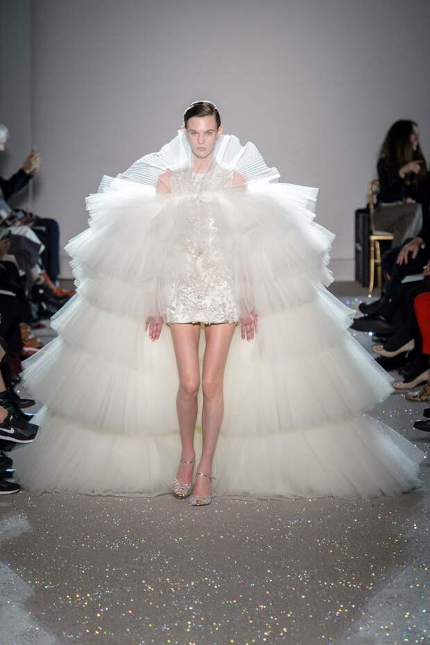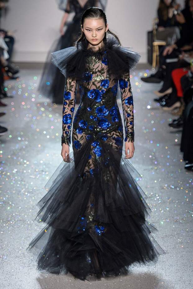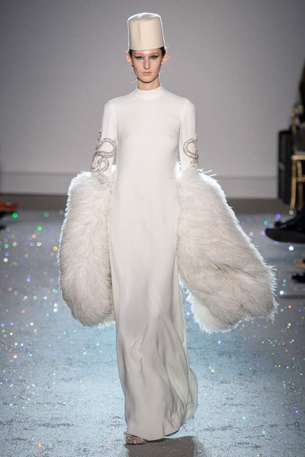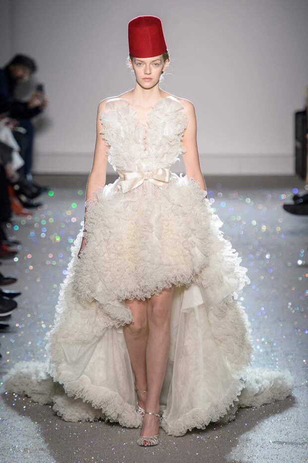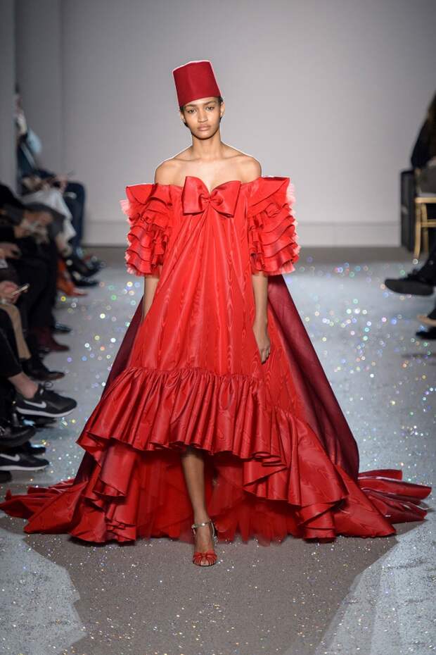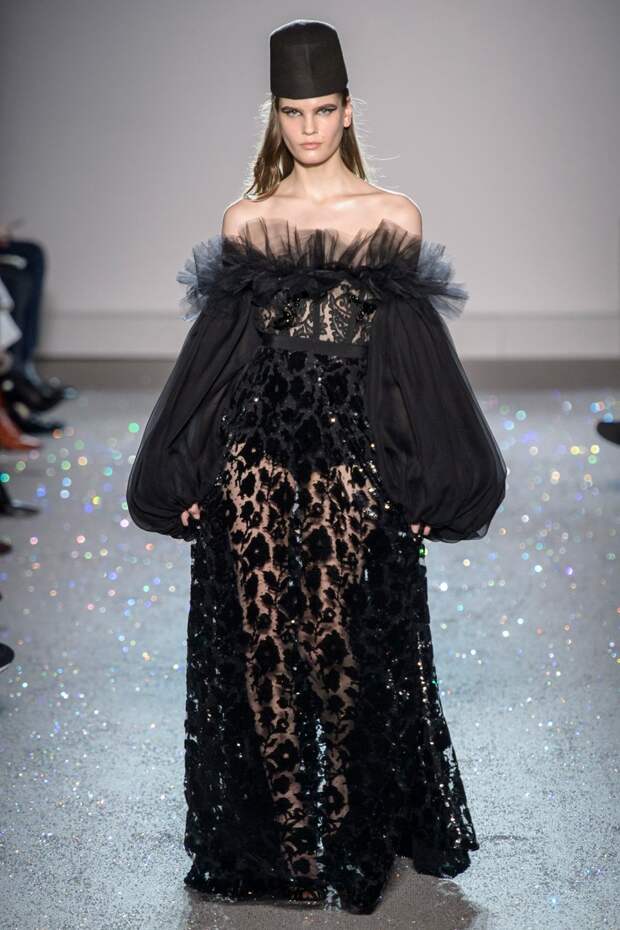Кутюрный показ Giambattista Valli с нетерпением ждут не только Оливия Палермо, Кьяра Ферраньи и другие звездные друзья итальянского модного Дома, но даже далекие от мира моды поклонницы его творчества, ведь невозможно устоять перед сказочным очарованием пышных драпировок, бусин и тонкого кружева. В этом году Валли с нескрываемым восхищением восторгается Востоком: большинство его моделей обзавелись стилизованными фесками или сикке — белоснежными, черными, алыми, розовыми и даже оливковыми.