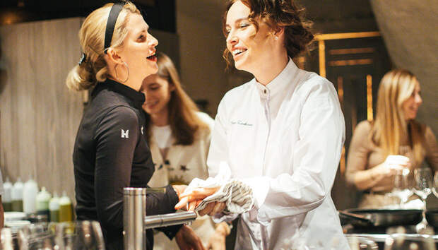 Двадцать мест долгожданного ужина Полины Киценко и Ирины Зарьковой были разобраны за считанные минуты — что неудивительно, ведь ажиотаж вокруг кулинарного дуэта в Instagram стоит серьезный. Еще во время прошлогоднего локдауна Ирина и Полина не на шутку увлеклись ведением кулинарных прямых эфиров, делились рецептами в профилях и выкладывали ежедневные эксперименты на кухне в stories.