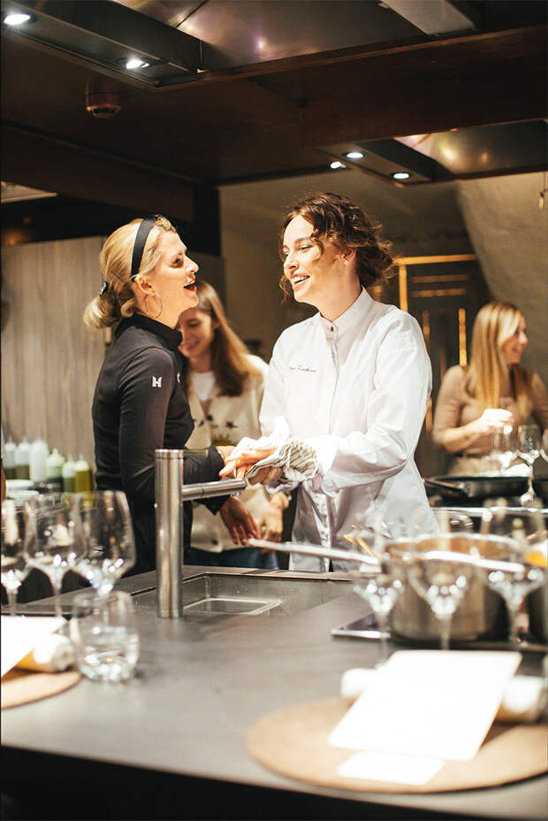 За месяцы изоляции рецепты были доведены до совершенства, и новоиспеченные блогеры наконец собрали друзей в легендарном московском Chef’s Table. Свое место в центре круглой кухни-сцены Владимир Мухин уступил Полине и Ирине. Все изрядно истосковались по излюбленным просторам старой Европы, поэтому гостей решили в этот вечер отправить в гастрономическое путешествие в Италию. Авторское меню хозяек вечера состояло из 7 подач и сопровождалось лучшими винами итальянских регионов. Каждое новое блюдо по традиции Chef’s Table сопровождалось подробным рассказом о его истории.