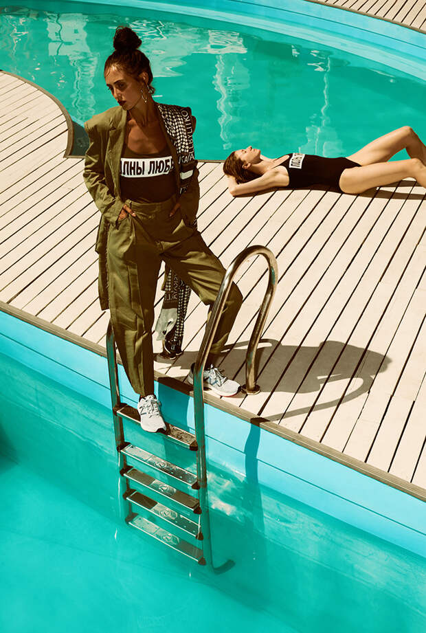 При всем этом женственность силуэтов, свойственная коллекциям Литковской, отражается и здесь: особенно это прослеживается в приталенных юбках и платьях. К “новой романтике”, как называет ее сама Лиля, отсылает также обилие шелковых платков, цветочные и гороховые принты и яркий розовый цвет.