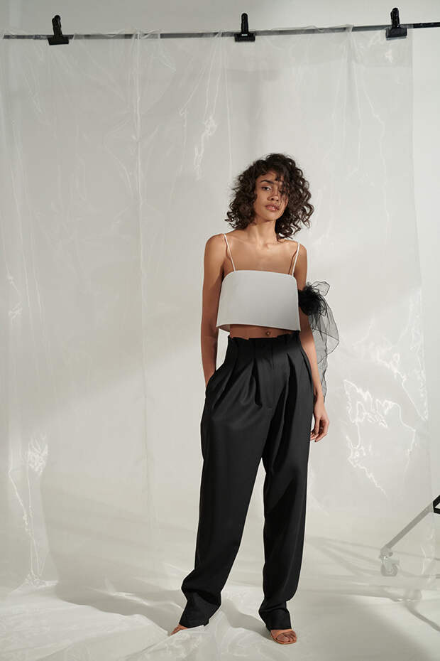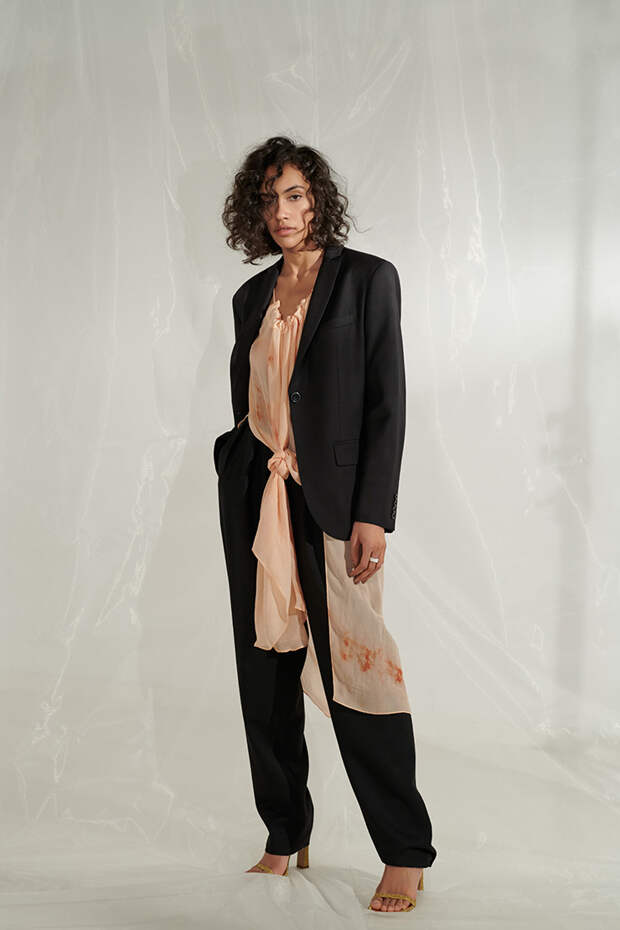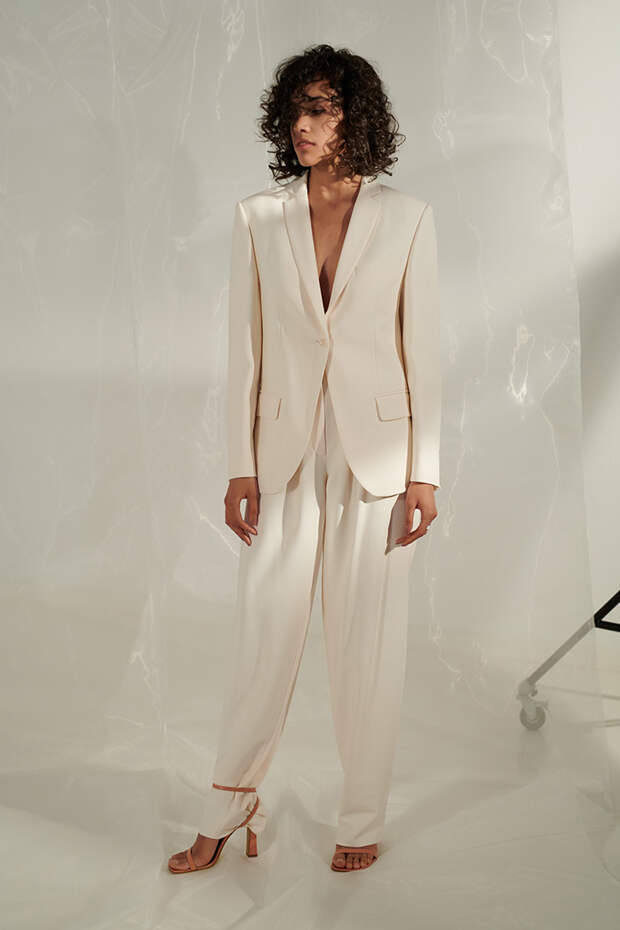 Цветовая гамма также создает особое настроение, тем более что все образы выполнены в остромодных оттенках - здесь и хаки, и небесно-голубой, и нежно-фисташковый, и все вариации бежевого. Особого внимания заслуживают и брючные костюмы: словно позаимствованные из мужского гардероба, они подчеркивают женственность изгибов и позволяют выглядеть особенно хрупкой. А если надеть их на голое тело, то этому оружию точно не сможет противостоять ни один мужчина.