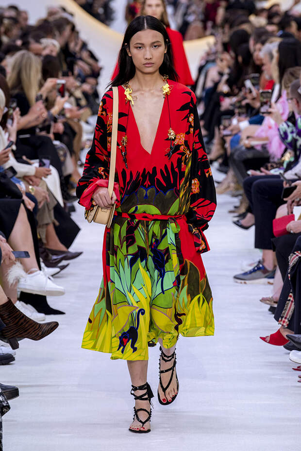 Перья, экзотические цветы и даже обезьянки — в весенней коллекции Valentino есть буквально все