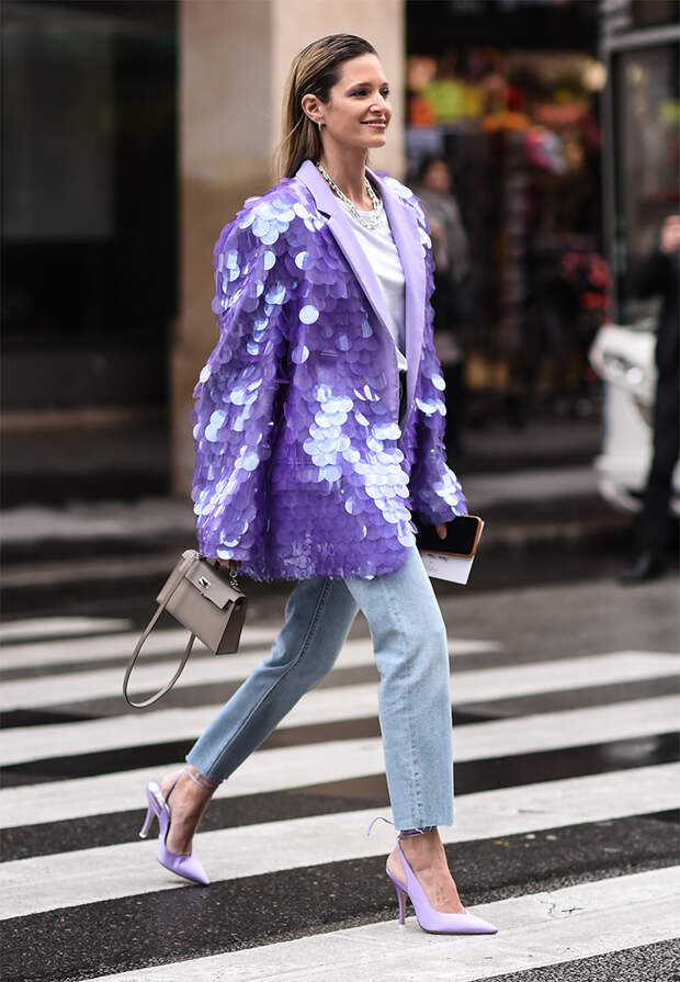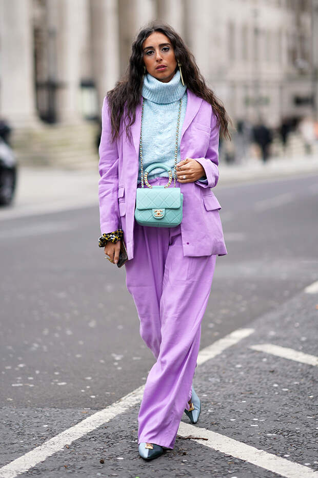 В холодные времена душа требует цвета – лавандовый отлично скрасит серые будни. И если совсем недавно этот оттенок ассоциировался с инфантильностью, то сегодня мы смело можем внедрять его в повседневные и даже офисные образы. С чем носить главный «зефирный» цвет сезона – вдохновимся у героев стритстайла.