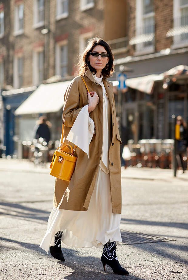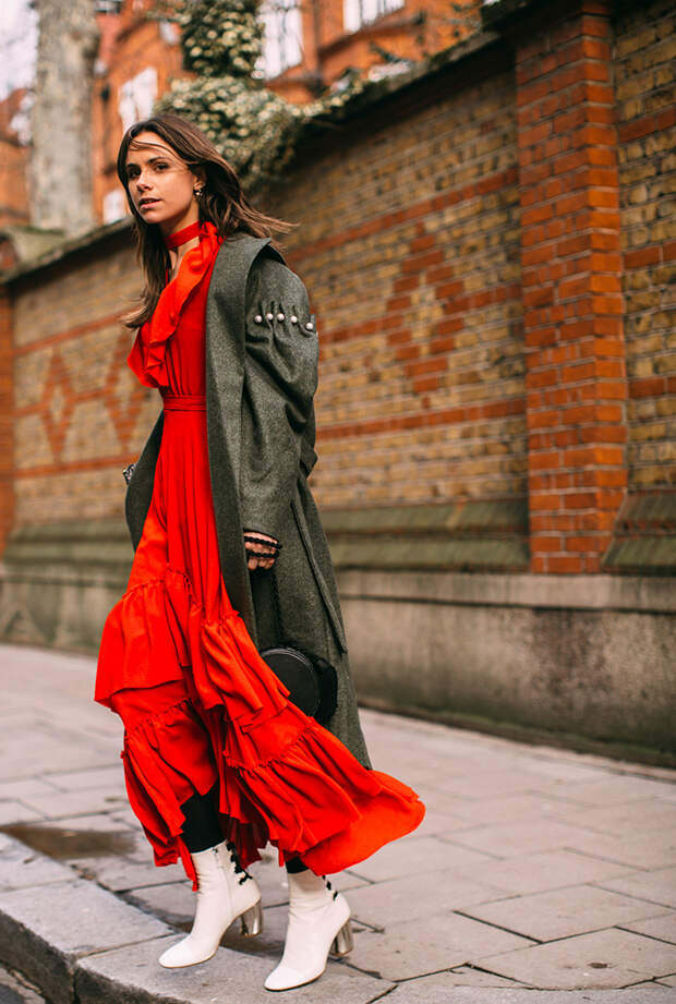 Ботильоны идеально подходят к длинным юбкам. А если дополнить их союз строгим верхом – пальто или удлиненным жакетом, – то выйдет отличный образ, уместный для любого случая.