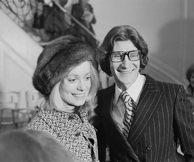 Денев познакомилась с Сен-Лораном в 1965 году в его же ателье на улице Spontini в Париже. За год до этого на 22-летнюю актрису свалилась небывалая слава после премьеры фильма "Шербурские зонтики". Денев искала подходящий наряд, чтобы встретиться с королевой Елизаветой II. С тех пор легендарный дизайнер одевал актрису еще около 40 лет, разработав, например, костюмы для ее персонажа по имени Северина в культовом фильме "Дневная красавица".