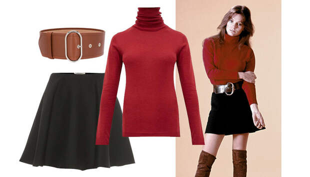 А порой - игривые, почти “школьные” наряды, делавшие ее особенно юной и очаровательной. Один из таких образов, в котором Жаклин снималась для актерского портфолио в 1970 году, мы взяли за пример - и повторили его с помощью вещей из онлайн-бутиков.