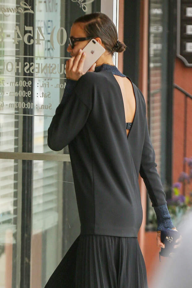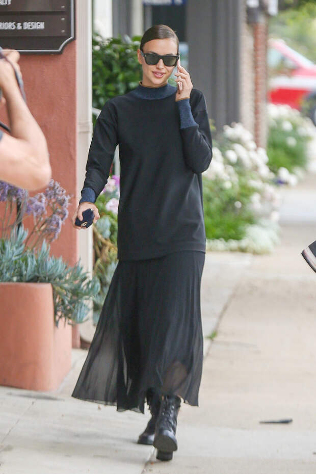 Пока западные СМИ наперебой пишут о расставании Ирины Шейк и Брэдли Купера, российская супермодель продолжает заниматься своими будничными делами и выглядит вполне счастливой на снимках папарацци. Фотографы запечатлели Ирину по пути в маникюрный салон: Шейк с кем-то непринужденно говорила по телефону и, несмотря на летний зной, дефилировала в свитшоте с открытой спиной, макси-юбке с плиссе и высоких ботинках на шнуровке.