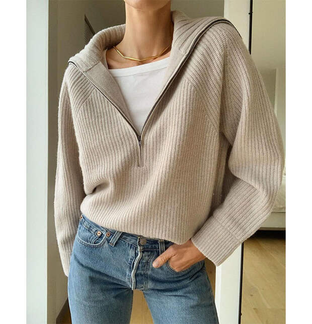 Свитеры на молнии ассоциируются у нас с лыжниками начала нулевых и навеивают воспоминания о папиных уютных свитерах из детства. Сегодня они на пике популярности. Это могут быть модели и с короткой молнией только у горла, и с молнией от горлышка до нижнего края свитера. Все они будут выглядеть свежее и интереснее, например, привычных оверсайз вариантов.