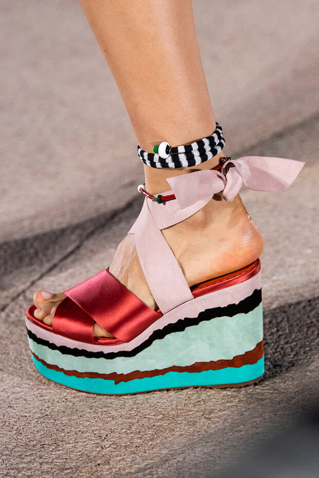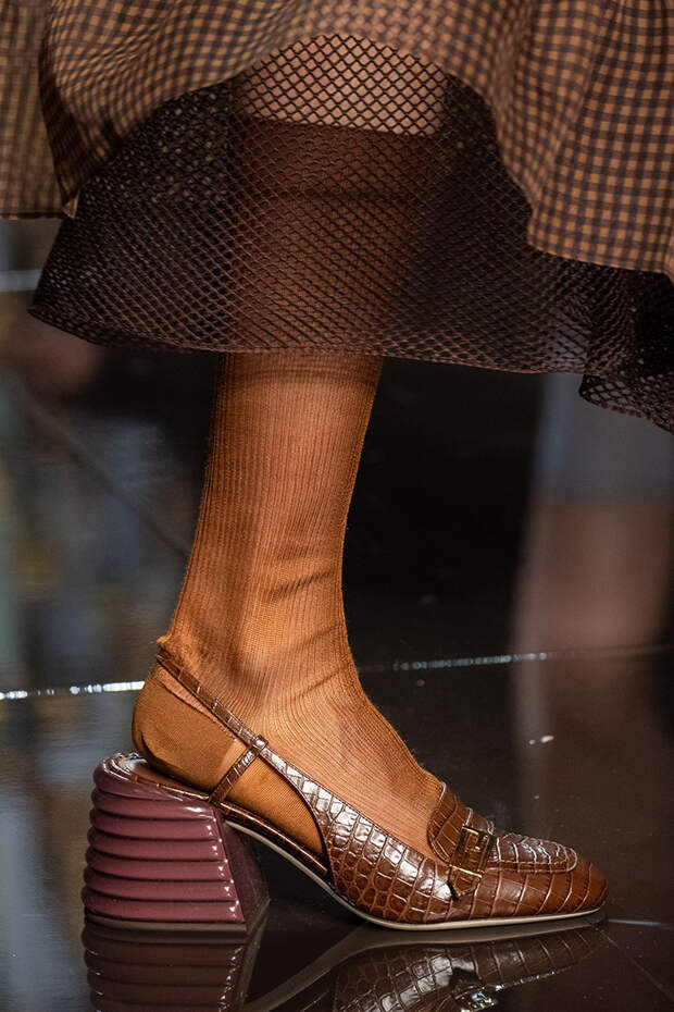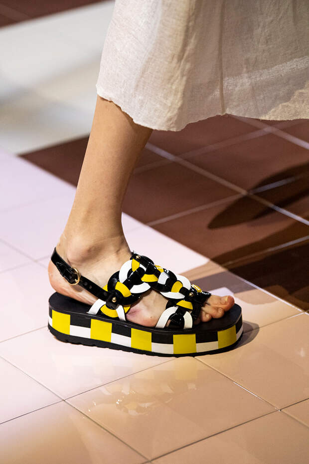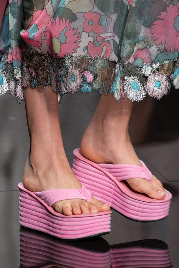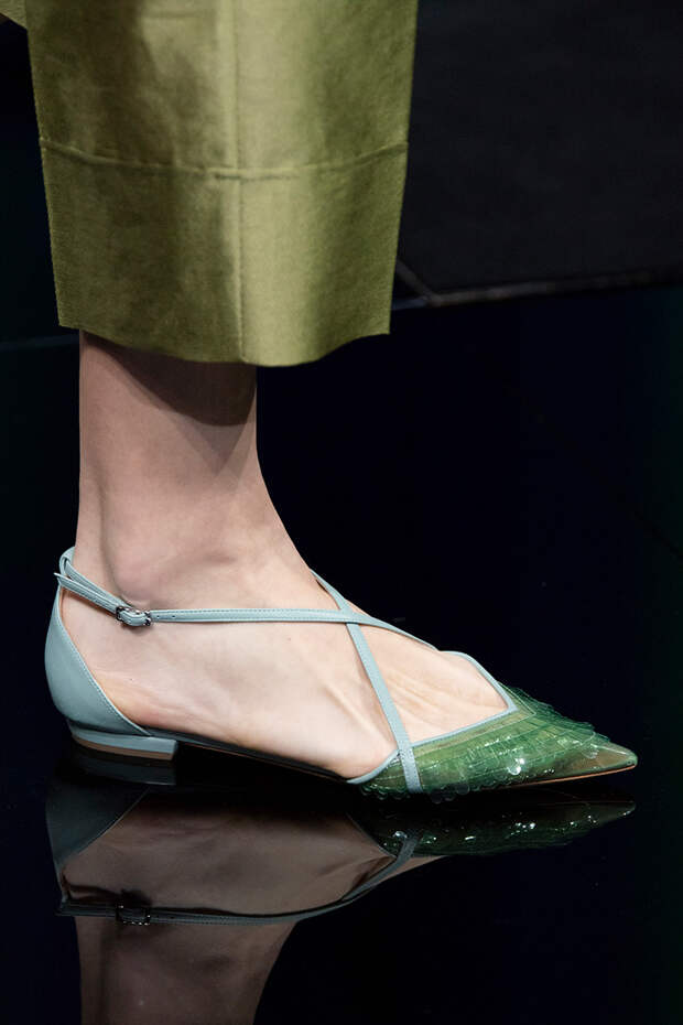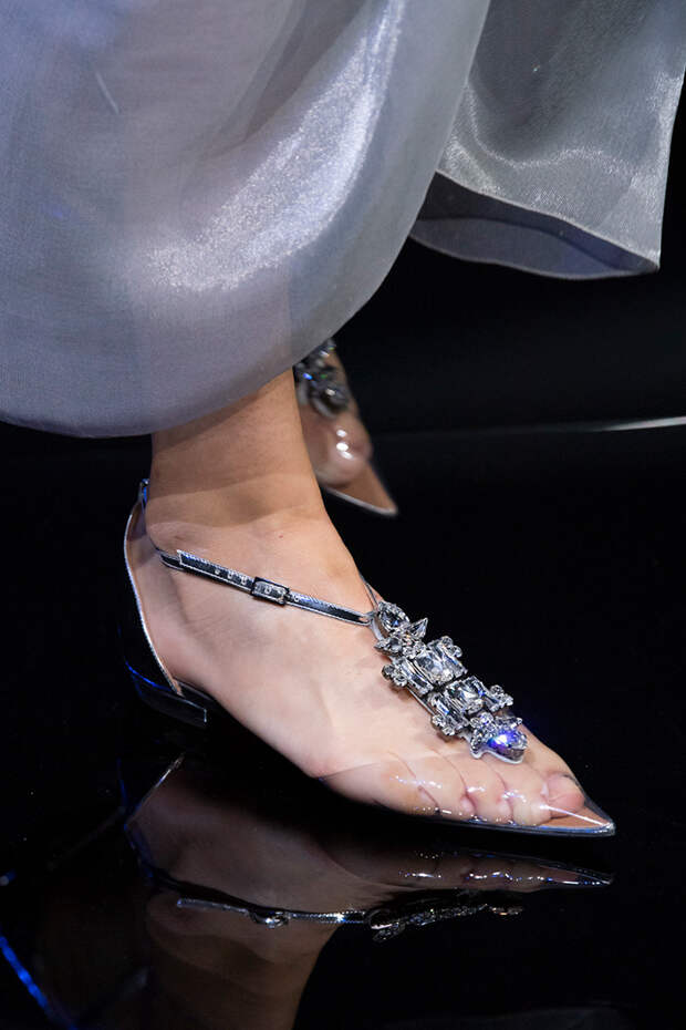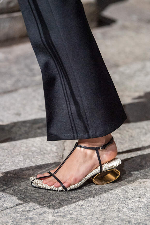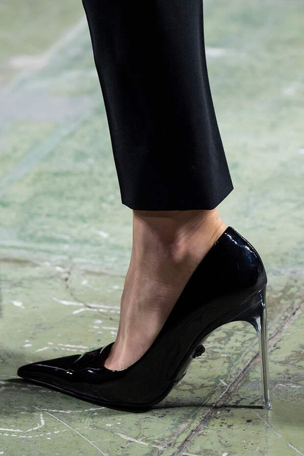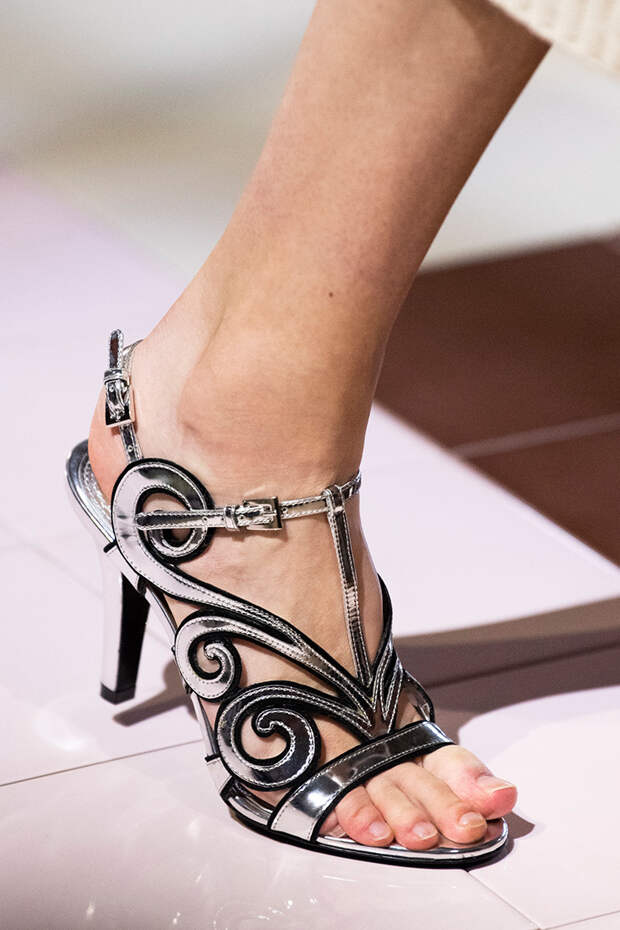 Тем более что любоваться босоножками особенно приятно, когда за окном осенняя промозглая погода. Среди самых запоминающихся пар - kitten heels Sportmax, сексапильные шпильки Versace, каблуки из бамбука Marni, "голубиные" туфли Moschino, серебряные "Мэри-Джейн" Prada и зеркальные туфельки Золушки в версии Bottega Veneta.Фото: IMAXTREE