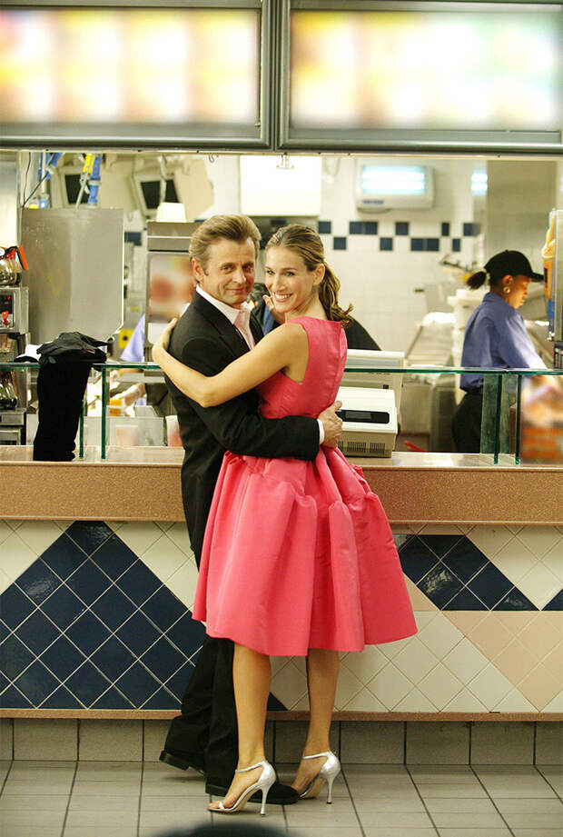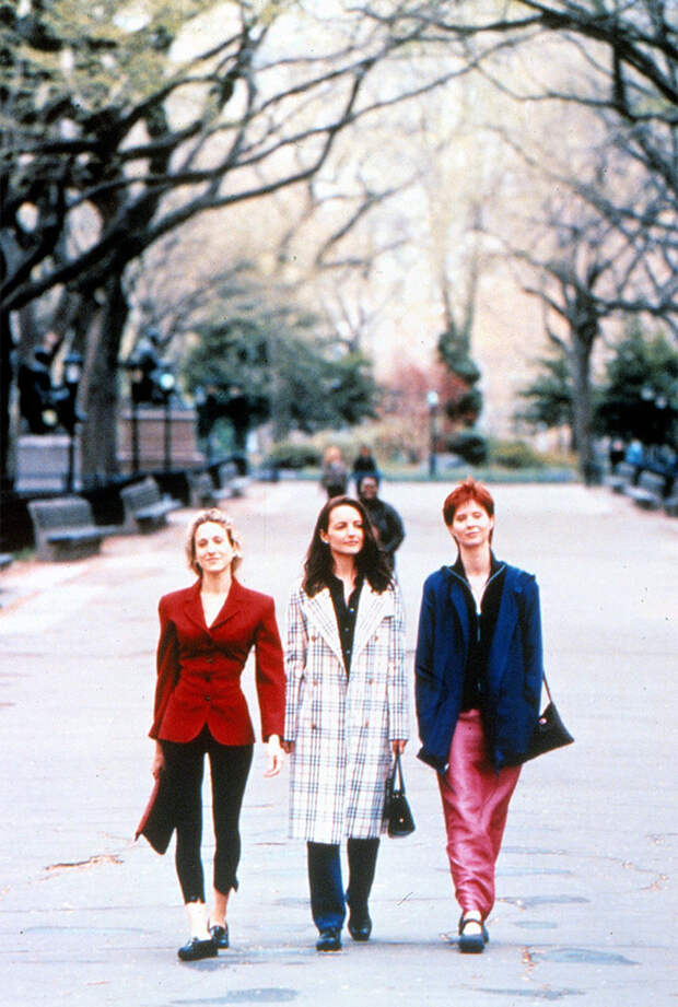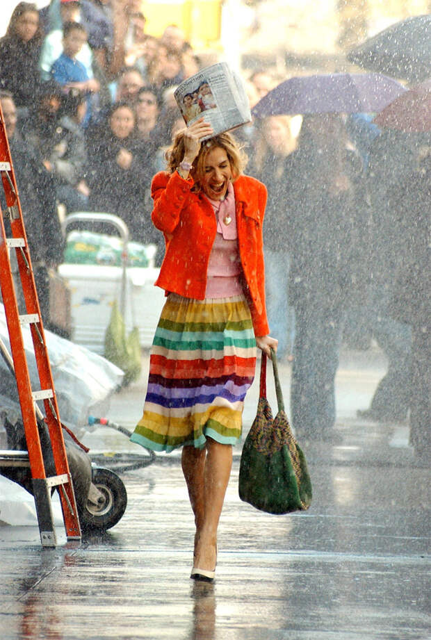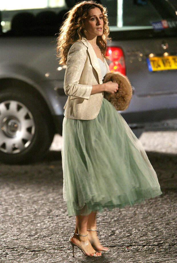 Не обходился ее гардероб и без классических приталенных жакетов: самая популярная модель, которая была модной в 90-х и актуальна сейчас, — в тонкую белую полоску; но был у нее и остромодный красный вариант с плечиками и акцентом на талии. К нему можно подобрать вневременную юбку миди — например, силуэта карандаш, которая идет девушкам любого роста (у Сары Джессики Паркер он составляет 160 сантиметров). И конечно, одна из главных деталей любого капсульного гардероба — это белая рубашка. Ее Кэрри могла надевать как самостоятельную вещь, которая играла роль платья, а также с мини-юбками или, наоборот, строгим, но романтичным комплектом из черных брюк и трикотажного топа.