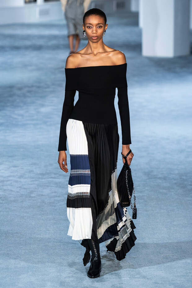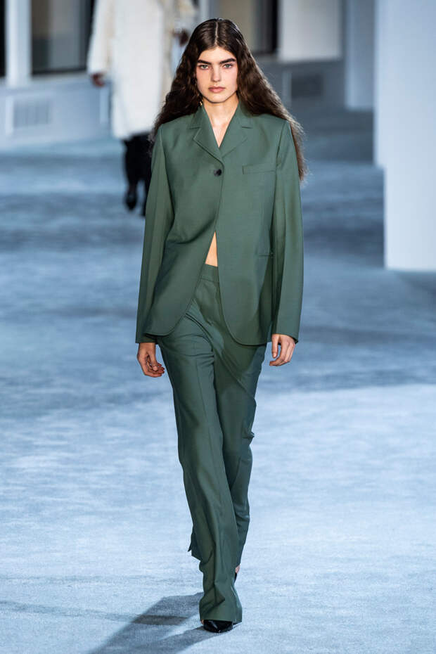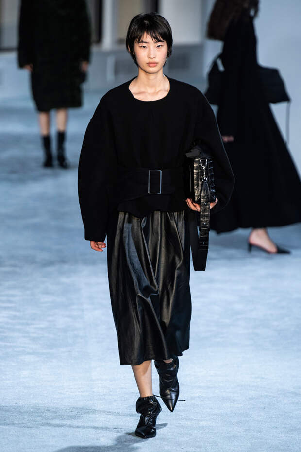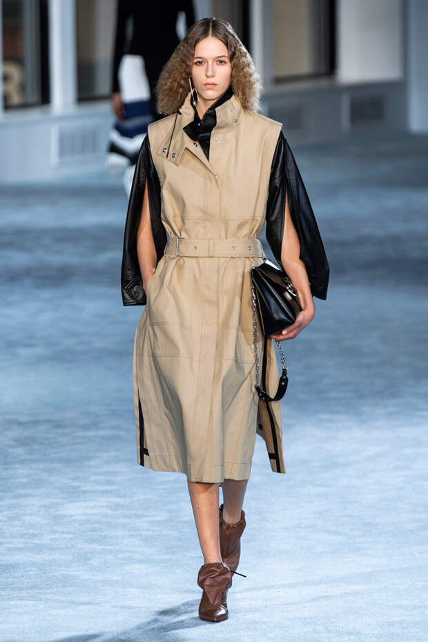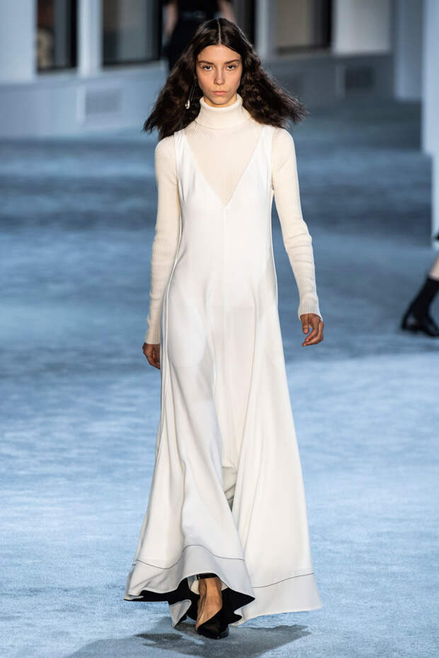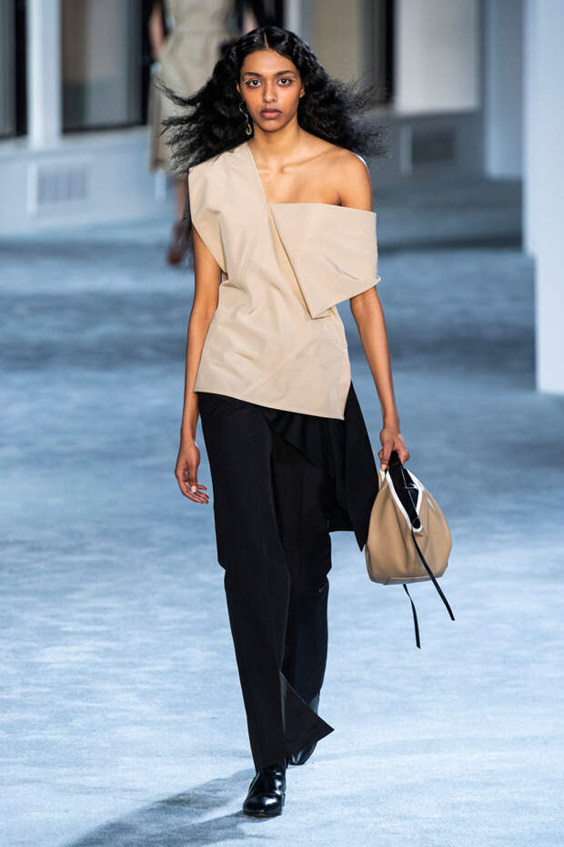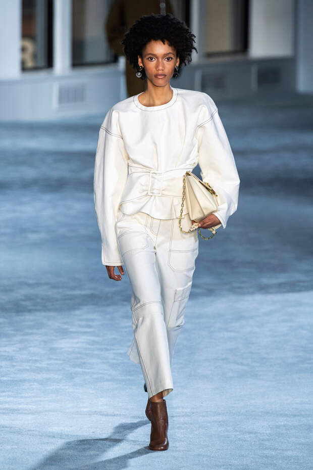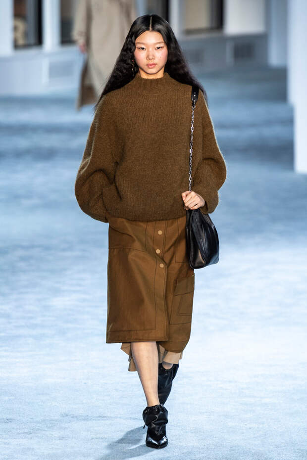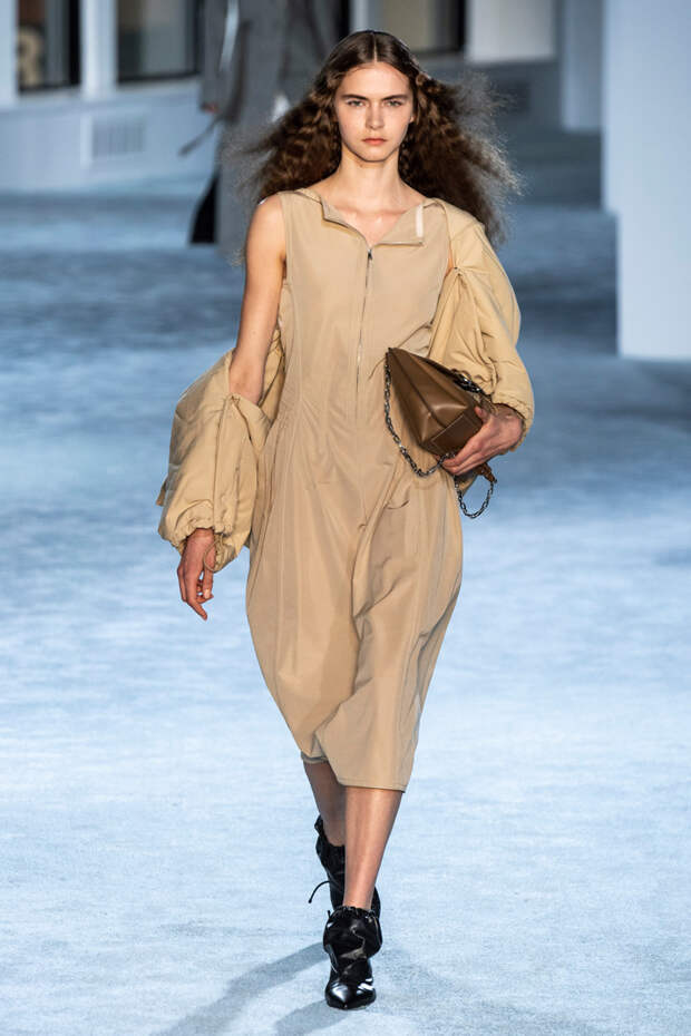 В первую очередь Филлип Лим избавился от всех «лишних» цветов, оставив только самые нейтральные краски: белый, серый, черный, коричневый, темно-синий и хаки. Их оказалось более чем достаточно — ярких цветов и пестрых принтов в Нью-Йорке было достаточно и без личного вклада Филипа Лима. Основной же идеей, вокруг которой построен весь предлагаемый им гардероб, стало сочетание рабочих вещей с традиционно элегантными, более женственными. Под рабочими имеются в виду и широкие джинсы с прострочкой по множественным карманам, и грубые юбки с запахом, напоминающие небрежно завязанные на талии куртки; и костюмы, похожие на униформенные комбинезоны, только из офисных тканей.