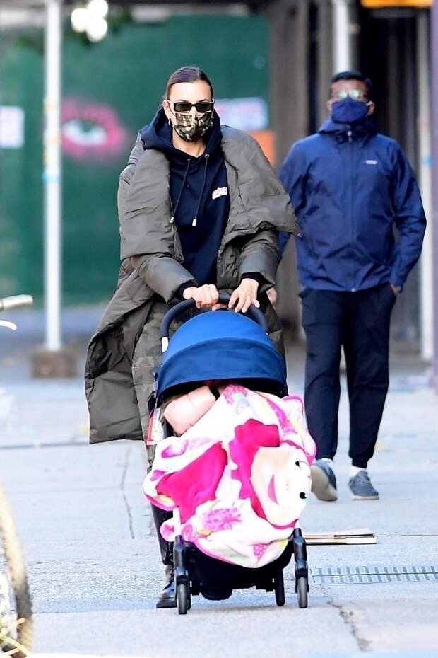Несмотря на календарную осень, в Нью-Йорке установилась промозглая погода. Ирина Шейк, хоть и выросла в России, явно не горит желанием раздеваться в угоду моде на холоде. Не собирается модель и сидеть дома, когда столбик термометра опускается чересчур низко. Ирина уверенно рассекает по Манхэттену в компании дочери Леи, которая уютно устроилась в коляске, прикрытая одеялом с изображением хитроумной героини мультфильма "Маша и медведь".