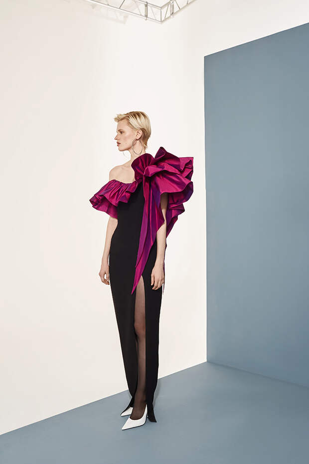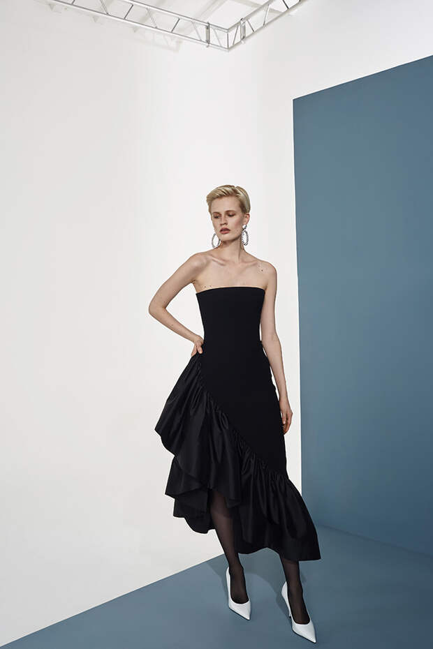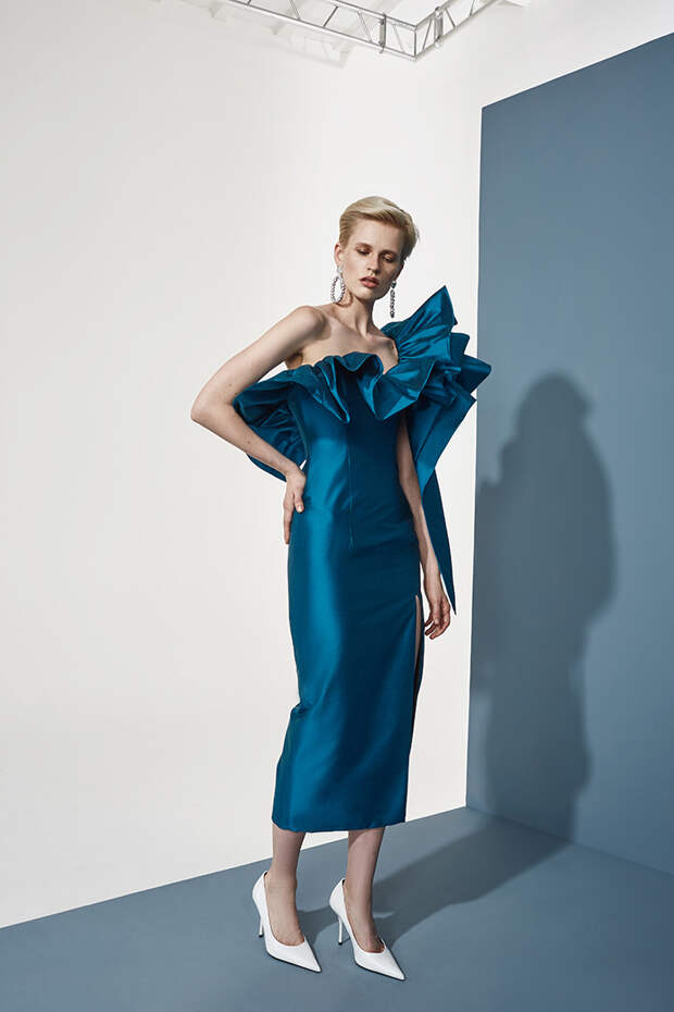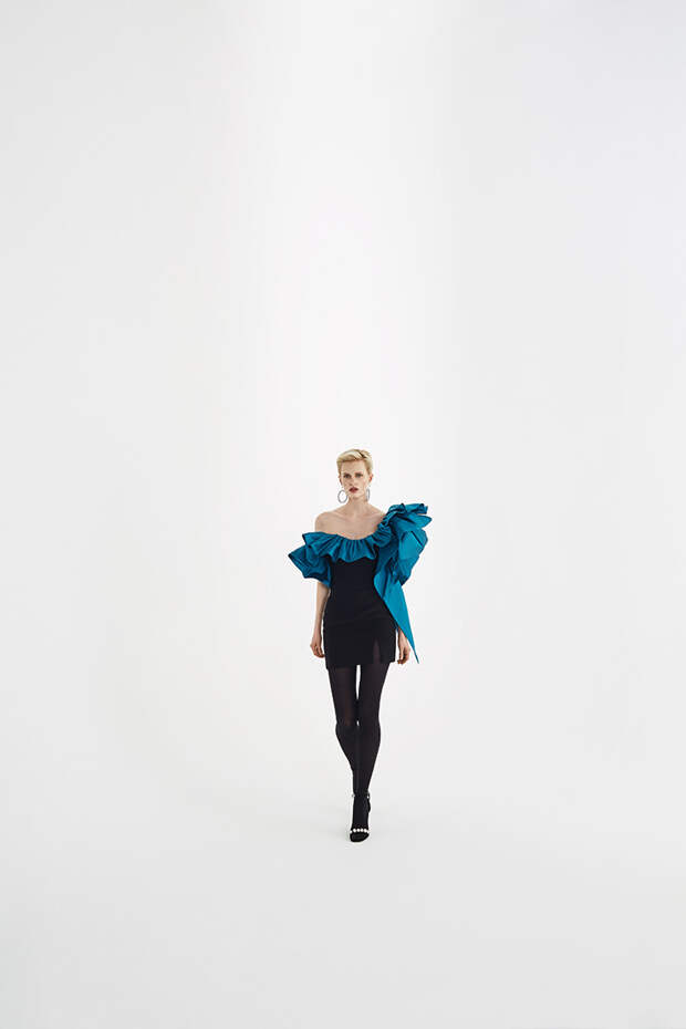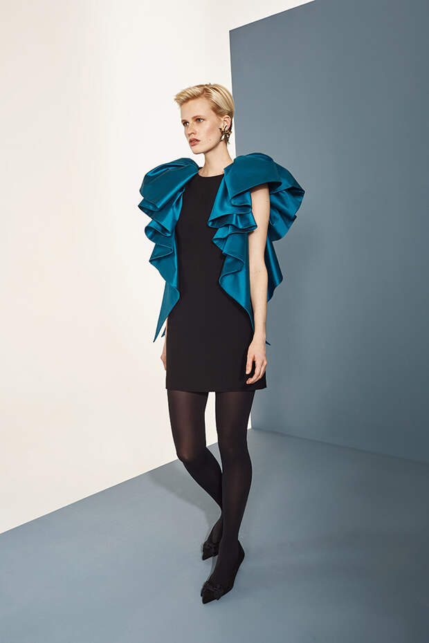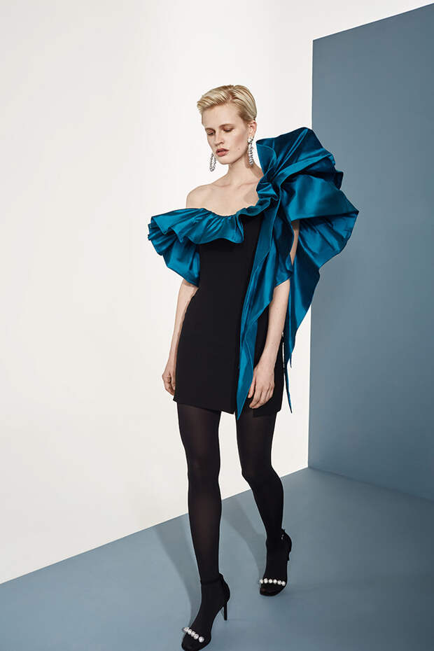 Номинально коллекция осенне-зимняя, но Расида традиционно отходит от темы сезонности и вопреки всем правилам использует тонкие ткани, провокационные разрезы, длину мини и прочие провокации. Однако главная изюминка - это рюши: они на каждом наряде уникальные, по-особенному задрапированные. Впрочем, не обошлось и без общепризнанных трендов: правда, здесь вездесущие клетка с леопардом почти незаметные, полупрозрачные, вышитые из слегка поблескивающих пайеток или "выгравированные" на гладком атласе.