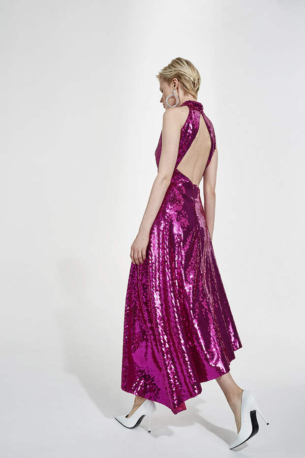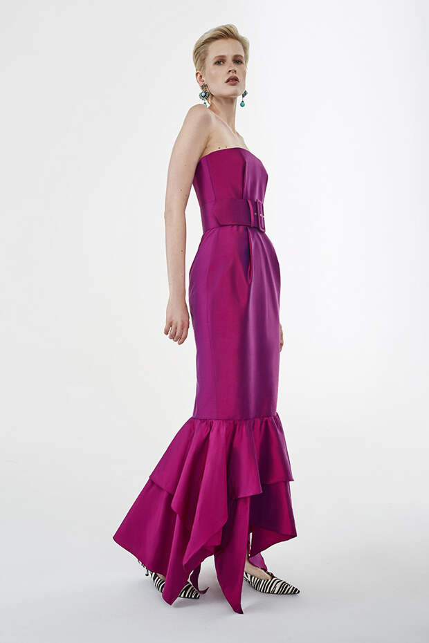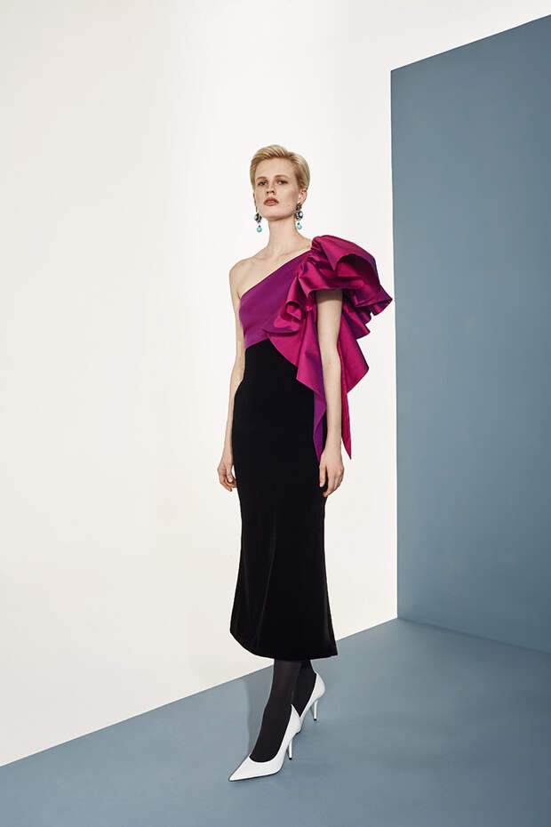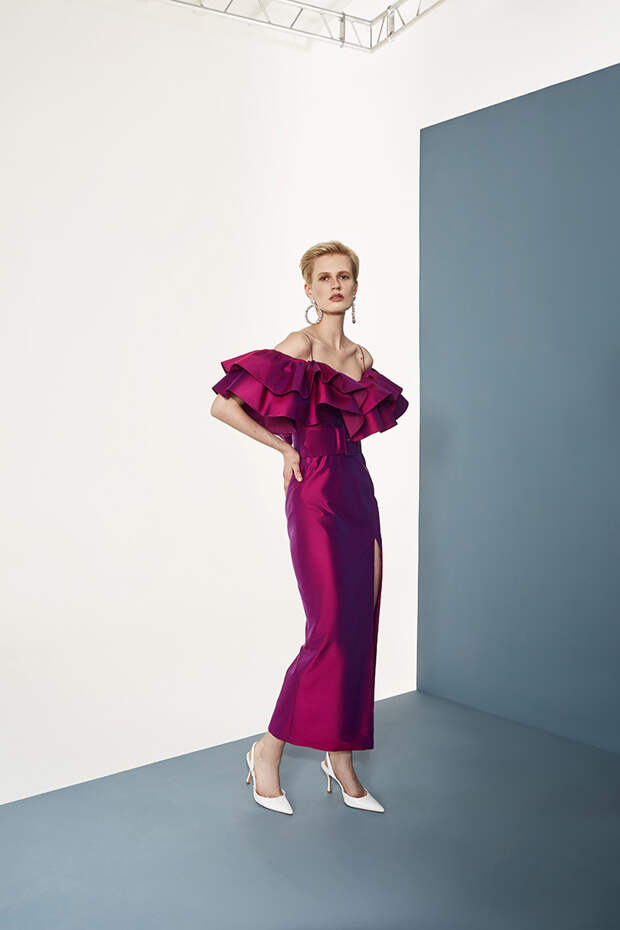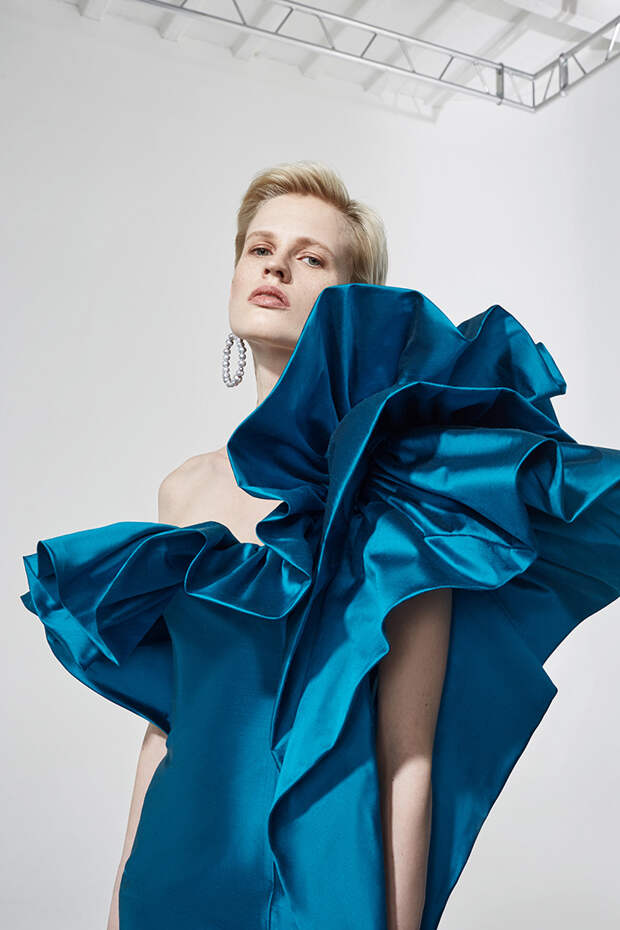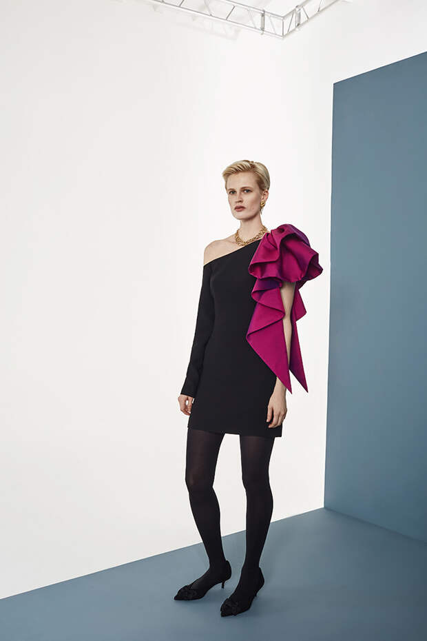 Номинально коллекция осенне-зимняя, но Расида традиционно отходит от темы сезонности и вопреки всем правилам использует тонкие ткани, провокационные разрезы, длину мини и прочие провокации. Однако главная изюминка - это рюши: они на каждом наряде уникальные, по-особенному задрапированные. Впрочем, не обошлось и без общепризнанных трендов: правда, здесь вездесущие клетка с леопардом почти незаметные, полупрозрачные, вышитые из слегка поблескивающих пайеток или "выгравированные" на гладком атласе.