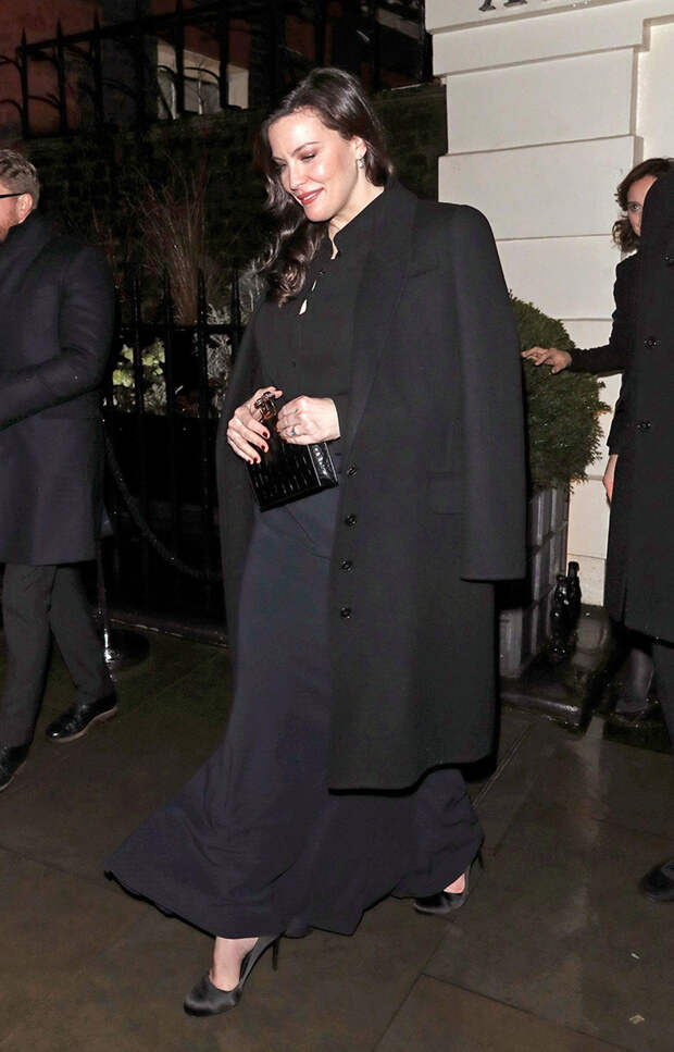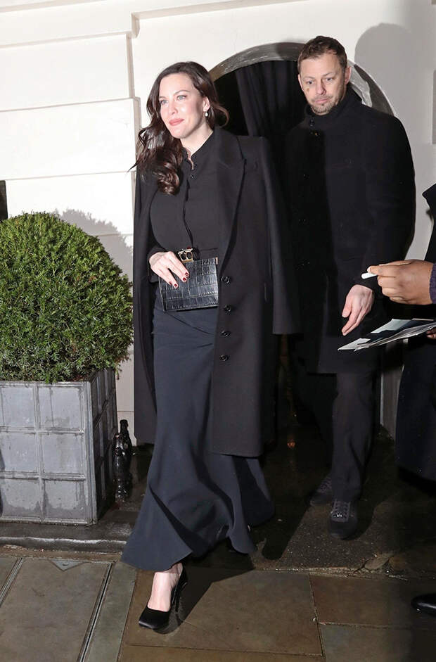 Вечером 6 февраля Лив Тайлер побывала на ужине, приуроченном к грядущей премии BAFTA. Актриса отправилась на мероприятие, прошедшее в Лондоне, в луке total black: летящей длинной юбке, наглухо застегнутой блузе, атласных туфлях на шпильке и строгом пальто будто с мужского плеча. Завершил образ прямоугольный клатч из крокодиловой кожи.