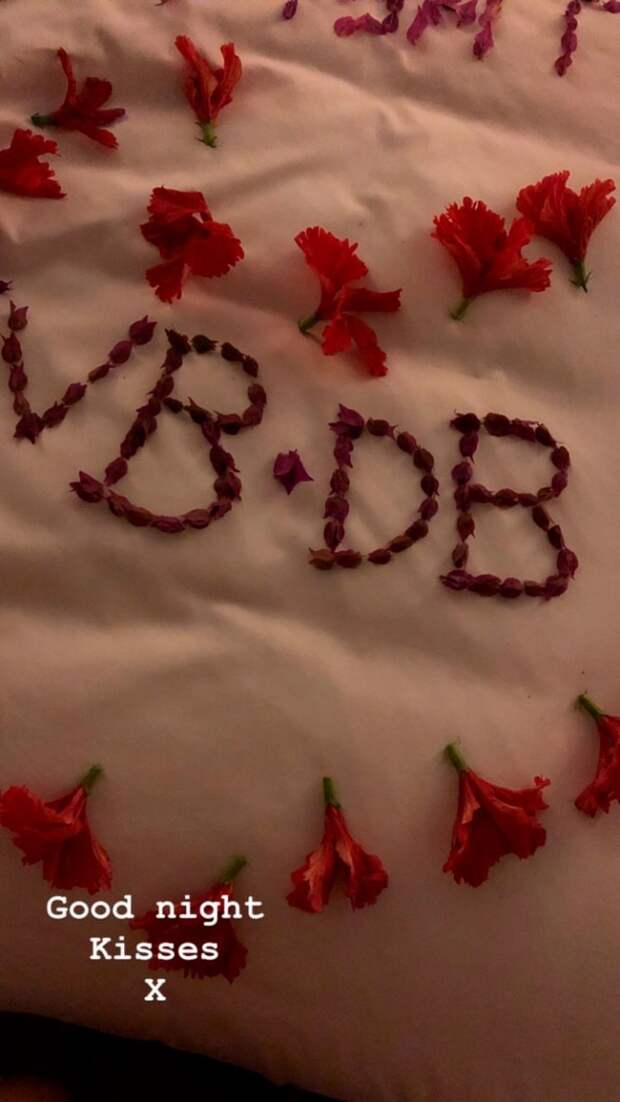 Бэкхемы полным составом отправились на Бали — у Дэвида и Виктории наконец появилась возможность провести время с детьми и друг другом. Вчера экс-солистка группы Spice Girls поделилась со своими подписчиками в инстаграм фотографией. На снимке белая простынь, покрытая лепестками роз, инициалы VB и DB и подпись: «Доброй ночи».