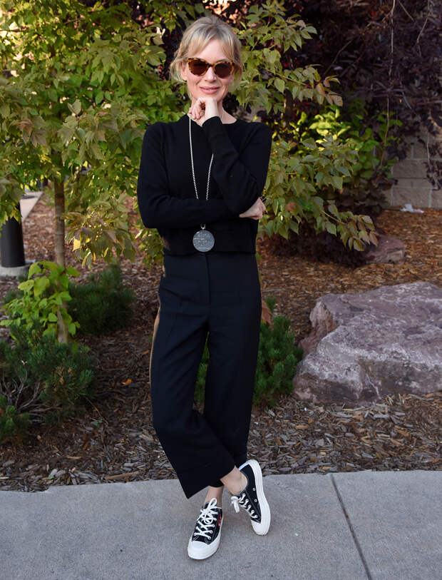 Пока Венеция принимает звездных гостей, в Северной Америке тихо и мирно начал свою работу 46-й Международный кинофестиваль в Теллурайде: одной из главных гостий стала Рене Зеллвегер, которая представила картину "Джуди". 50-летняя Рене обычно избегает светские мероприятия, но в этот раз она с улыбкой позировала перед камерами в черном джемпере, укороченных брюках с высокой посадкой и демократичных кедах.