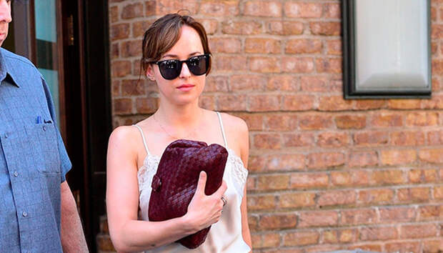 Шелковый топ с кружевной отделкой в паре с джинсами – комплект, который всегда выручит. Дакота Джонсон, пойманная в объектив фотографов в Нью-Йорке, знает об этом не понаслышке. Клатч и удобные босоножки дополнили простой, но элегантный образ. В московских реалиях лучше подстраховаться и накинуть на плечи джинсовую куртку или пиджак.