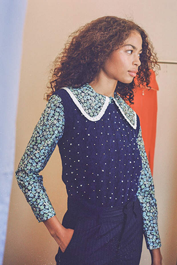 Цветочный принт — не привилегия весенне-летних коллекций, Этой осенью Maje предлагает примерить платья и блузы с флоральным мотивом и кружевными воротничками: кажется, “наивные” тренды с нами всерьез и надолго.