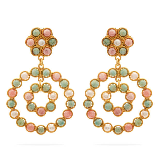 Изделия из разноцветных камней - не самые универсальный, зато точно самый яркий и запоминающийся вариант. Особенно богатым на такие красочные модели стал показ Chanel, где буквально все - от серег до колец - было украшено камнями разных оттенков. Браслет или ожерелье в радужной цветовой гамме станет отличным дополнением к коллекции украшений в базовых тонах и добавит акцент в темные осенние образы.