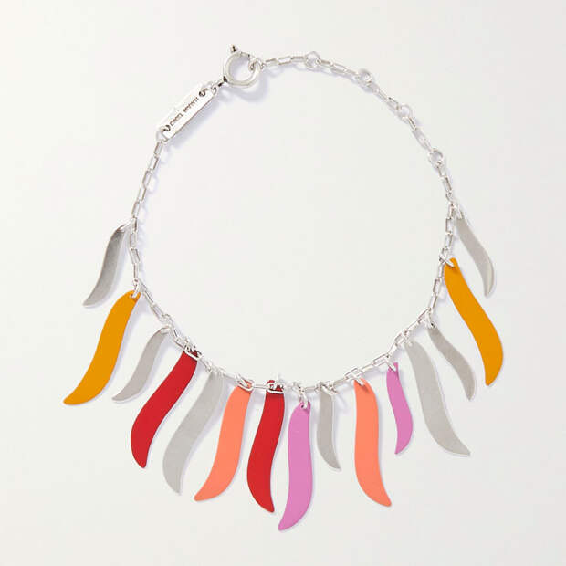 Хоть этот тренд уже давно нам знаком, мы не могли оставить его без внимания. В новом сезоне украшения-цепи приобрели новый масштаб - они появились в коллекциях Bottega Veneta, Off-White, Chloe и многих других брендов. Вместо популярных золотистых цепочек обратите внимание на неординарные модели: например, на ожерелье цвета слоновой кости от Zimmermann, или серебристый браслет от Saint Laurent.