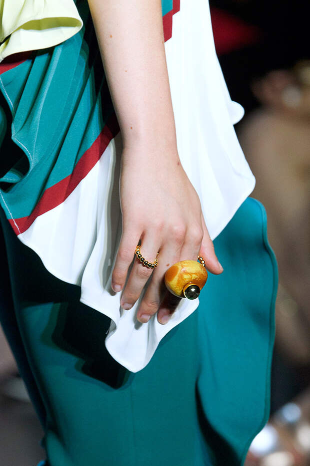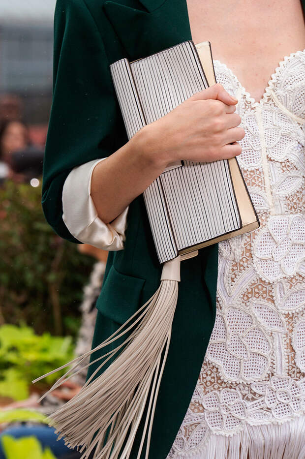 Моносерьги необычной формы можно найти у Coach. Примеры сумок в виде гармошки, мешочка с рюшами или плоского ридикюля подсмотрите у Gabriela Hearst, Chiara Boni La Petite Robe и Coach. Браслеты в виде цветов на предплечье и плечо показали Rodarte. А 3.1 Phillip Lim и Anna Sui сошлись на том, что летом не обойтись без панамы. Всего не перечесть — лучше насладиться нашей галереей.