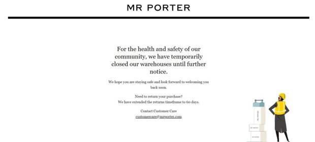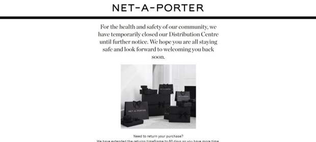Пандемия коронавируса по-прежнему лихорадит мир моды. После отмены показов и недель моды пришла очередь и временного прекращения работы ретейлеров. Yoox Net-a-Porter приостановили онлайн-продажи на сайтах Net-a-Porter и Mr Porter из-за распространения коронавирусной инфекции нового типа, этому примеру последовал и ретейлер Next.