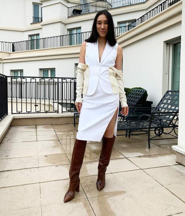 Наверняка вы не раз слышали, что носить вместе вещи в разных оттенках белого ни в коем случае нельзя. Якобы более темный будет смотреться в таком случае "грязным" — так что вам либо предстоит ограничиться одной белой вещью на весь образ, либо педантично сверять оттенки друг с другом для идеального попадания в тон.