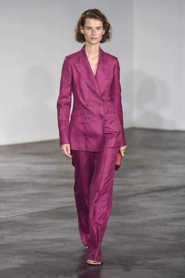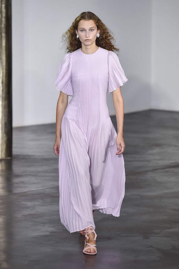 Тут же и простые костюмы, которые подойдут для офиса, но выполнены они из мягких тканей вроде льна и в нежно-розовой гамме, поэтому им найдется место и в повседневном гардеробе. Габриэла попыталась создать вещи вне времени, которые будут смотреться стильно независимо от того, что сейчас на пике популярности. И нет ничего дальновиднее, чем выбрать простой прямой крой, добавив к нему лишь несколько неброских деталей — плиссировку, открытые плечи, пояс (будто рукава завязанной рубашки).