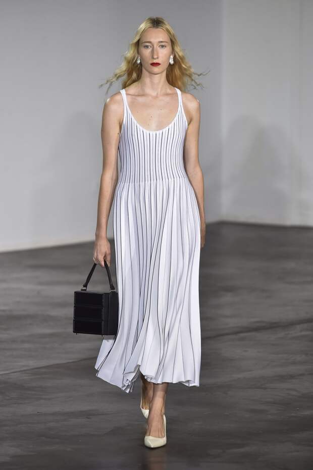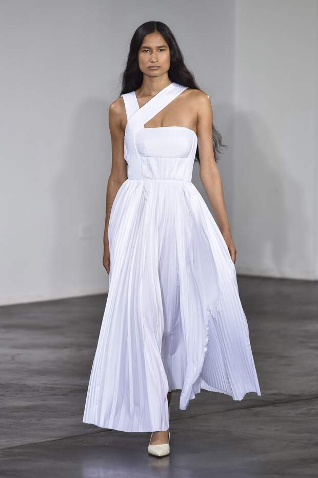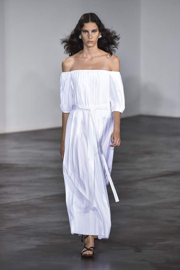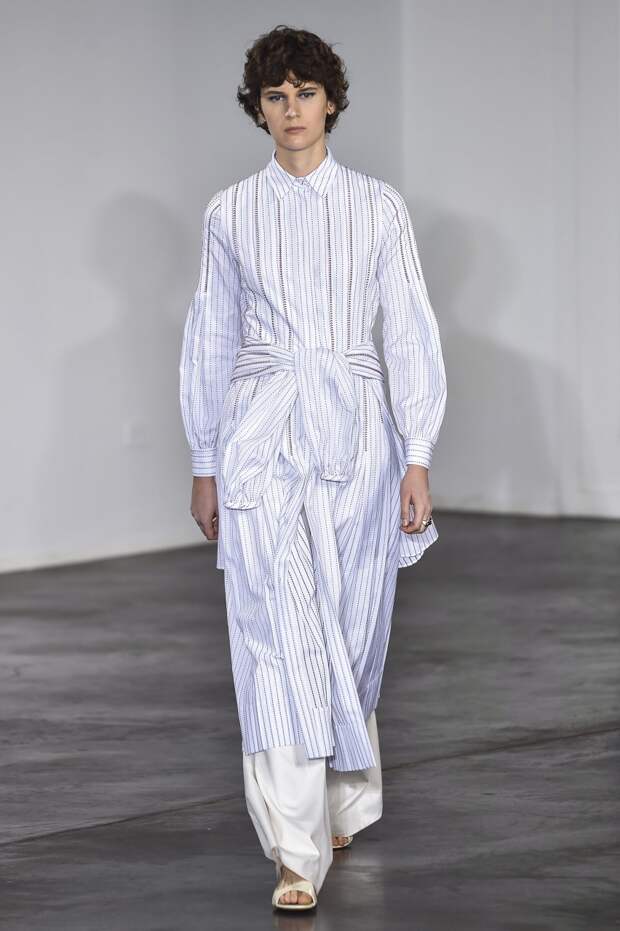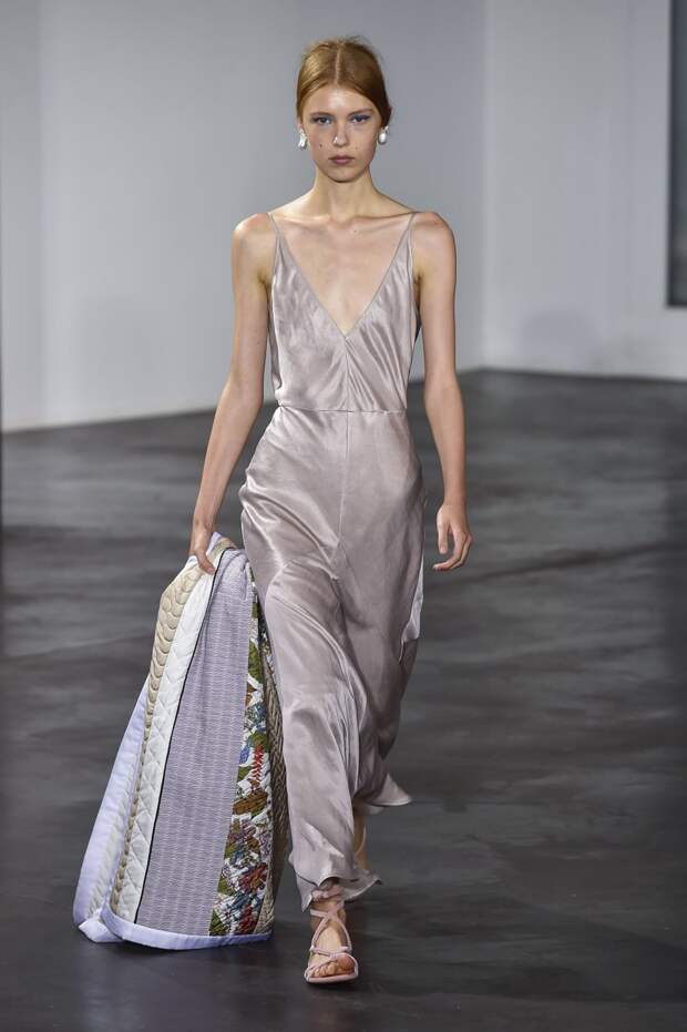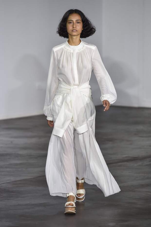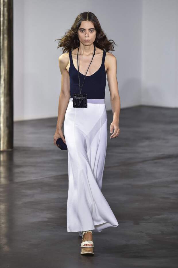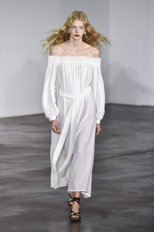 Подчеркнутая линия талии, глубокое декольте, открытые плечи, полупрозрачные материалы — все это звучит рисково. Но если посмотреть на новую весенне-летнюю коллекцию Gabriela Hearst, то такая ассоциация сразу отпадает, а на первый план выходят элегантные линии, лаконичность и легкость. Дизайнер соединила строгие и свободные рубашки с женственными юбками в пол, и получились платья, в каких легко представить современную независимую от мимолетных тенденций девушку.