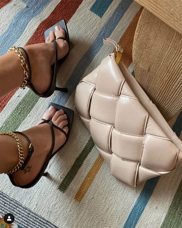 В топ-10 любимых моделей первые четыре места гордо делят различные версии Bottega Veneta. Остальные призеры почетной десятки — черные, белые или бежевые, The Row, Amina Muaddi или Aquazzura, и обязательно с тонкими ремешками.