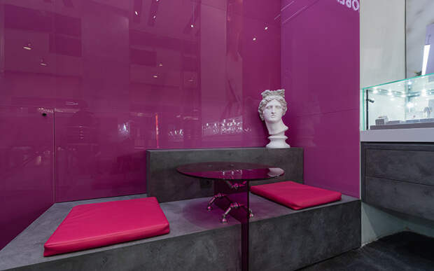 Российский ювелирный завод с почти вековой историей традиции любит, но не в ущерб будущему. «Бронницкий ювелир» провел полный ребрендинг, который включил смену айдентики (новый символ – буква О, напоминающая кольцо с бриллиантом) и редизайн салонов. В бутиках теперь есть лаундж- и селфи-зоны, украшения удобно представлены в зале 14 коллекциями, чтобы клиентам было проще собирать сеты в одном стиле, а неоновые интерьеры украшают огромные кадры из рекламной кампании, снятой в петербургском Доме архитектора фотографом Денисом Бычковским.