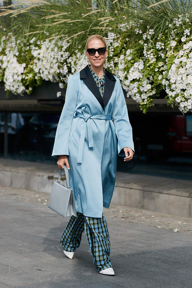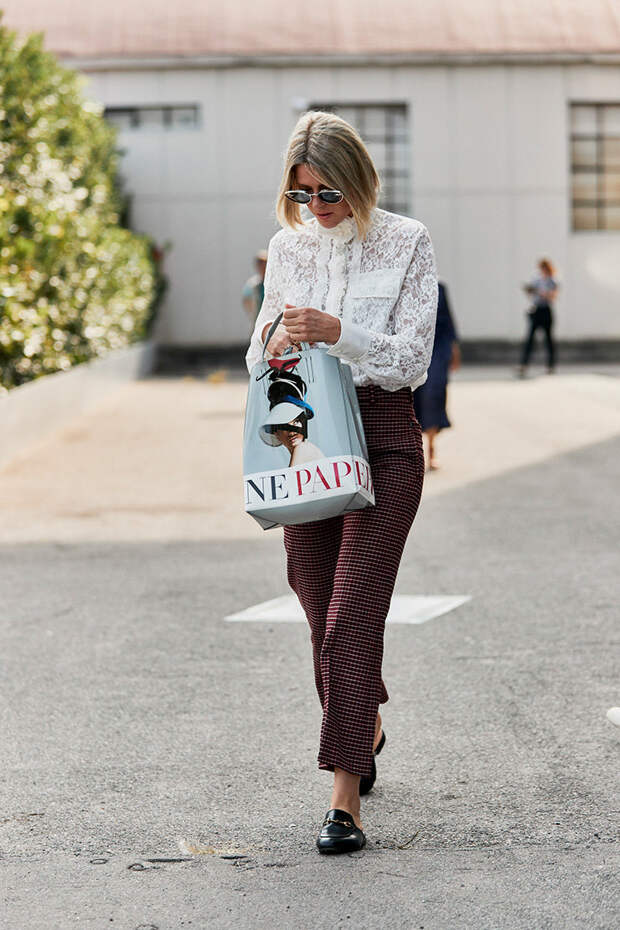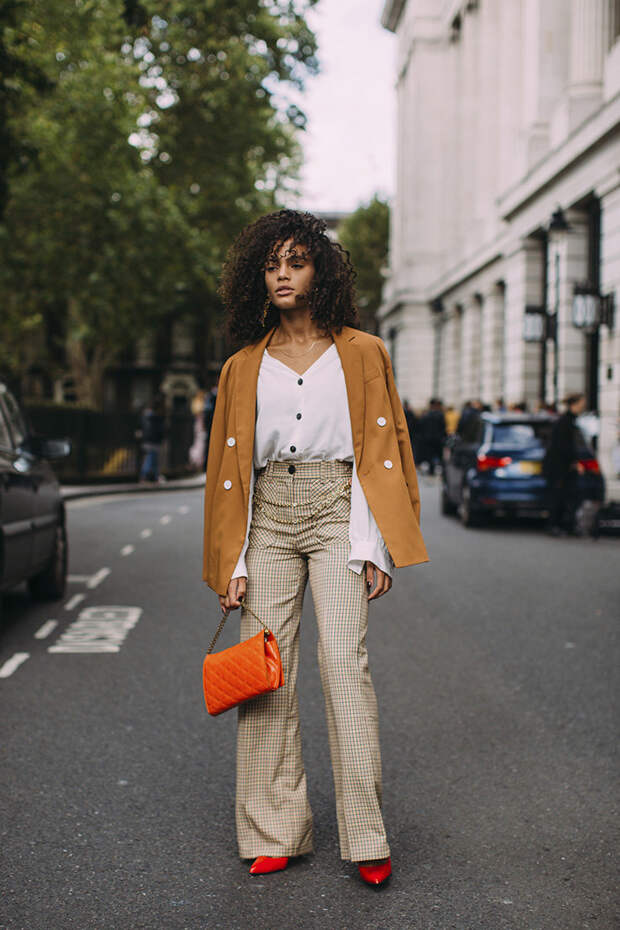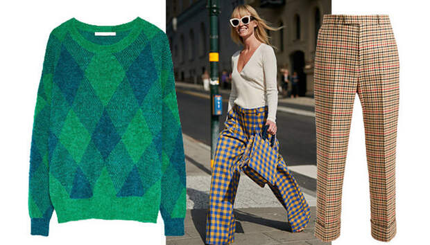 Этой осенью стритстайлеры предложили множество комбинаций с принтованными моделями. Самые простые — с белыми рубашками или блузками, а также кофтами и кардиганами нейтральных оттенков — бежевого, слоновой кости, кремового. Они оттеняют пестроту брюк и гармонизируют весь образ. Подберите к ним куртку, жакет или пальто, которые будут сочетаться по цветам с низом: например, коричневый + бежевый, сливовый + лавандовый, небесно-голубой + темно-синий и так далее.