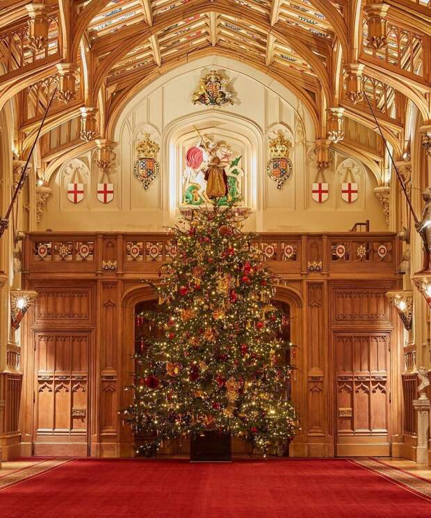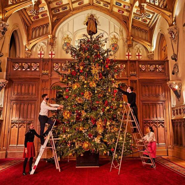 Дело в том, что в Великобритании были введены новые ограничения из-за коронавируса — и королевская чета теперь вынуждена находиться на карантине в замке. Впрочем, вряд ли им там будет скучно. В этом году Виндзорский замок декорировали сотнями мерцающих золотистых гирлянд, красных и золотых игрушек и фигурками ангелов. В одном из холлов резиденции установлена огромная 6-метровая ель — декораторы использовали лестницы, чтобы ее нарядить! Увидеть роскошный праздничный декор своими глазами посетители смогут с завтрашнего дня.