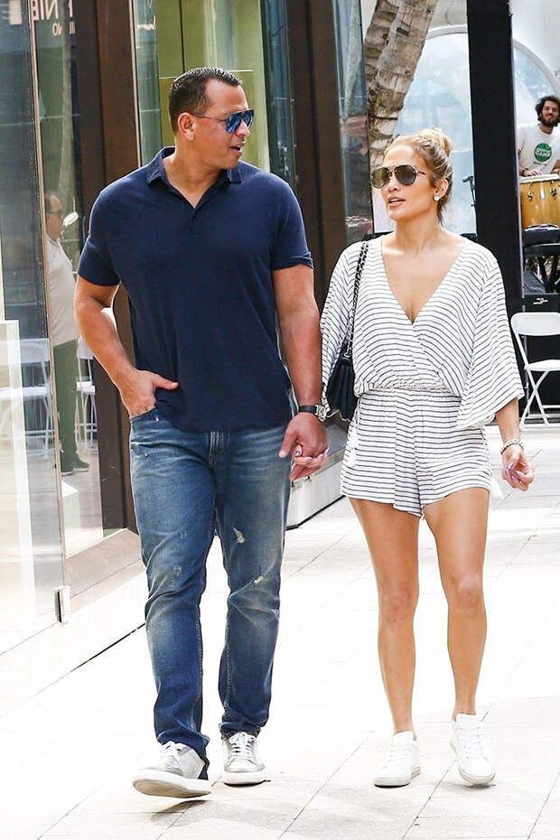 Минувшим днем Дженнифер Лопез и ее давнего бойфренда Алекса Родригеса папарацци "застукали" за шопингом в Майями. Влюбленные выбирали себе ювелирные украшения, гуляли, держались за руки и приятно проводили время в обществе друг друга. Дженнифер, пользуясь случаем и погодными условиями, выбрала летний наряд - короткий комбинезон и удобные кеды.